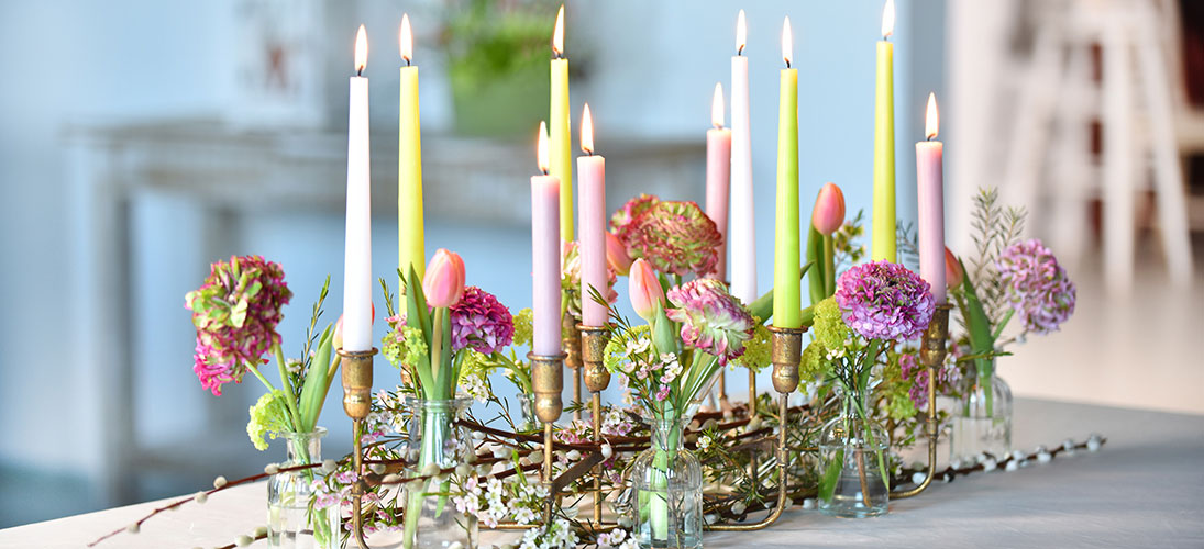 Olipa violetti, vihreä, beige, valkoinen, klassinen punainen tai kulta - monipuolisella kynttilivalikoimallamme kukkakaupat voivat suunnitella yksilöllisiä adventtiseppeleitä. Pylväskynttilät sopivat erityisesti seppeleiden asettamiseen. Ennen kuin ne ovat täysin palaneet, nämä kynttilät sammuvat itsestään ja vähentävät siten tulipalon vaaraa. Niiden laaja muoto takaa myös pitkän palamisajan.