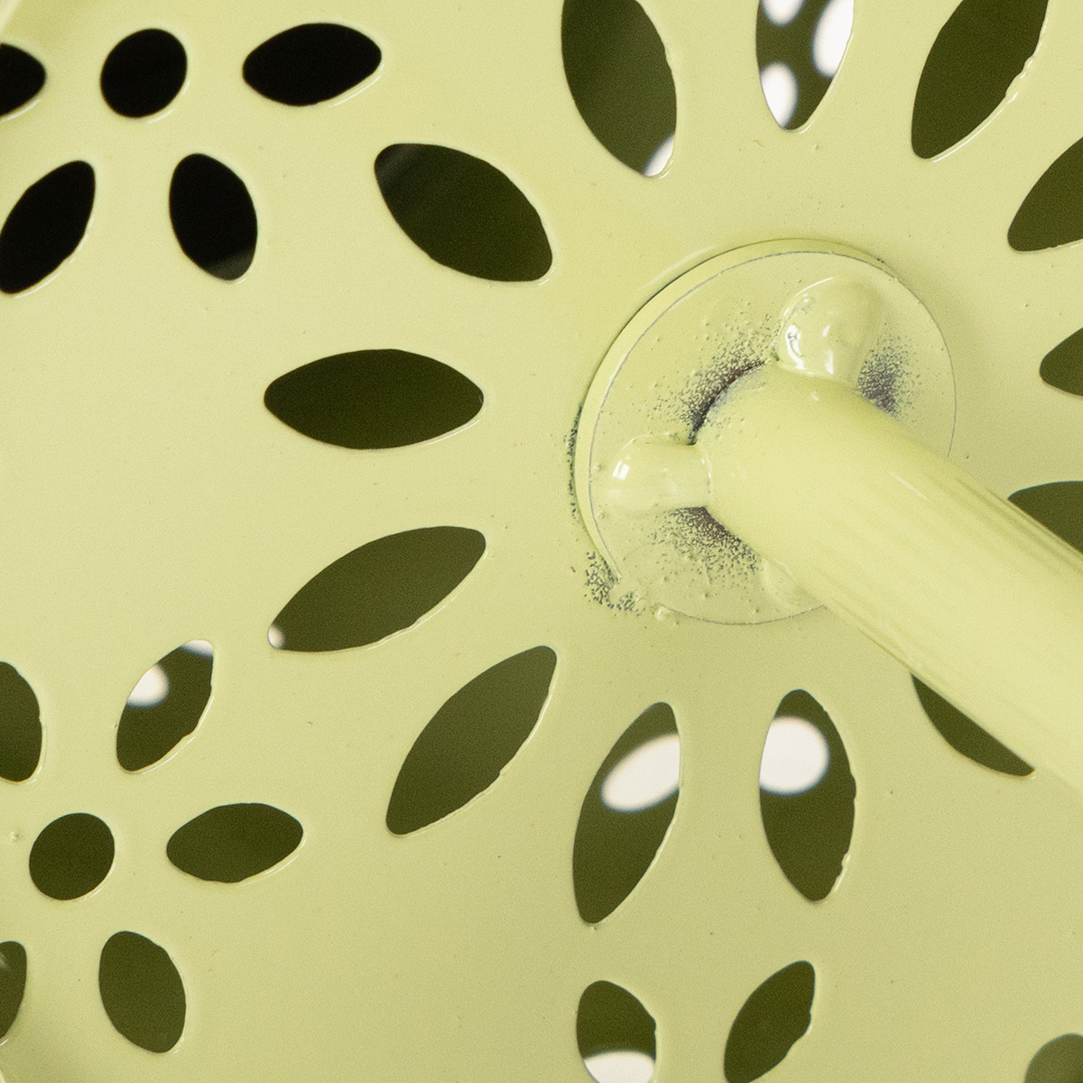Romanttisen muotoilun ja modernin teknologian yhdistelmä tekee tästä aurinkopöytävalaisimesta ulkovalaistuksen kohokohdan. Sekä varjostimessa että yleisessä työnjäljessä heijastuva herkkä kukka-aihe antaa lampulle leikkisän ilmeen. Erityisesti illalla, kun lämmin valo siivilöityy monimutkaisten kuvioiden läpi, luodaan maaginen tunnelma. Vihreä sävy lisää luonnollisen silauksen, joka täydentää täydellisesti kasveja ja ulkoasetelmia. Ihanteellinen luonnon ystäville ja kestävää kehitystä arvostaville: aurinkoteknologia lataa mukana tulevan ladattavan AAA-pariston tehokkaasti päivän aikana, jolloin lamppu syttyy automaattisesti pimeän tultua. Täysin ilman johtoja tai ulkoisia virtalähteitä! 28 cm korkea lamppu ei ole liian pieni eikä liian vaikuttava ja sopii täydellisesti puutarhapöytiin, parvekehyllyille tai koristeellisiin sivupöytiin. Se näyttäisi myös upealta ikkunalaudalla tai pienellä jakkaralla huvimajan edessä. Kestävän metallimateriaalin ansiosta voit nauttia tästä elegantista lampusta vuosia – jopa säännöllisessä ulkokäytössä. Vinkki: Tämä lamppu sopii täydellisesti maalaistaloon tai vintage-tyyliin. Voit halutessasi yhdistää sen pieniin kukkaruukkuihin tai muihin kukkakoristeisiin. Siitä tulee silloin kesäsisustuksesi keskipiste!