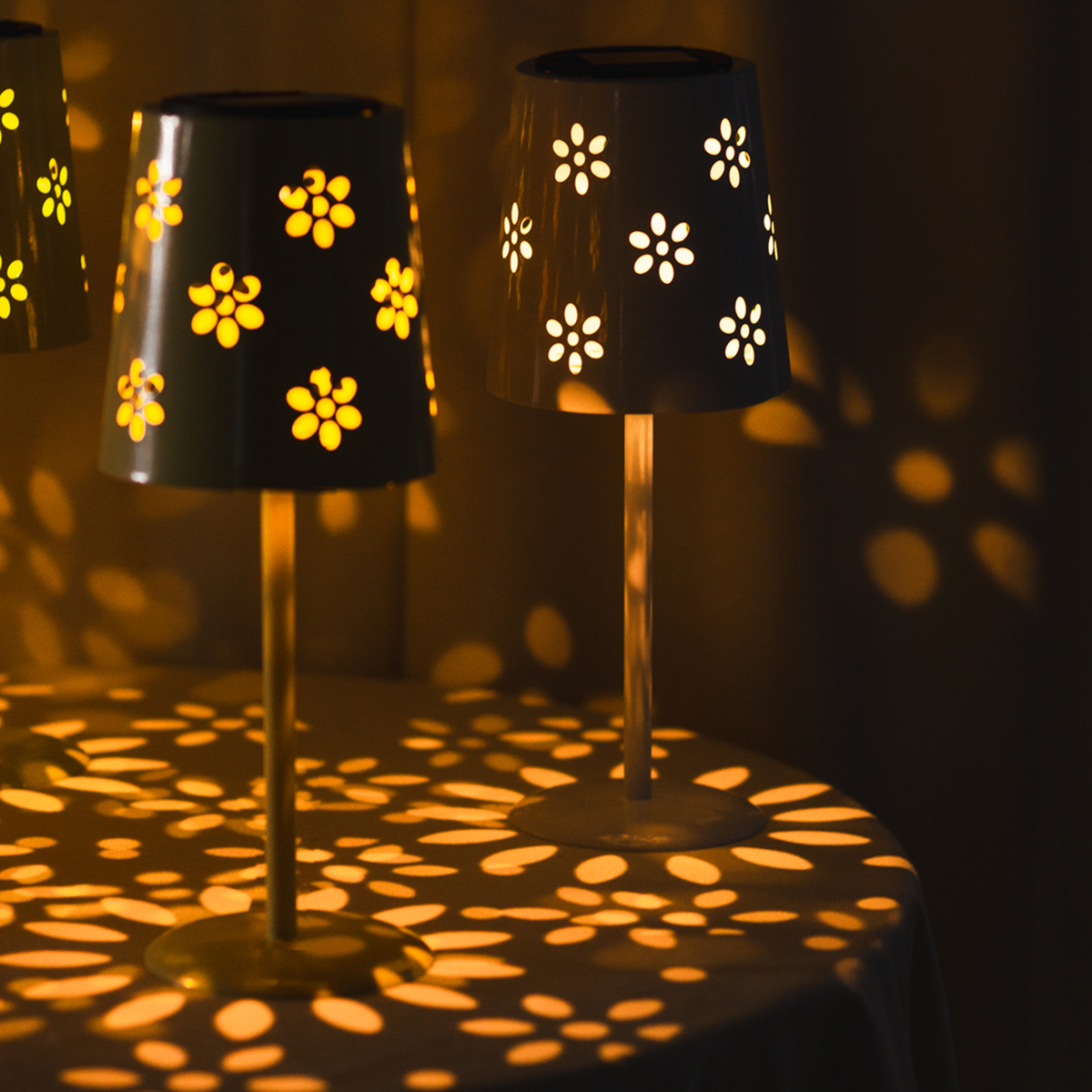 Aurinkokäyttöinen LED-pöytävalaisin – Tunnelmallinen valaistus kukkakuviolla