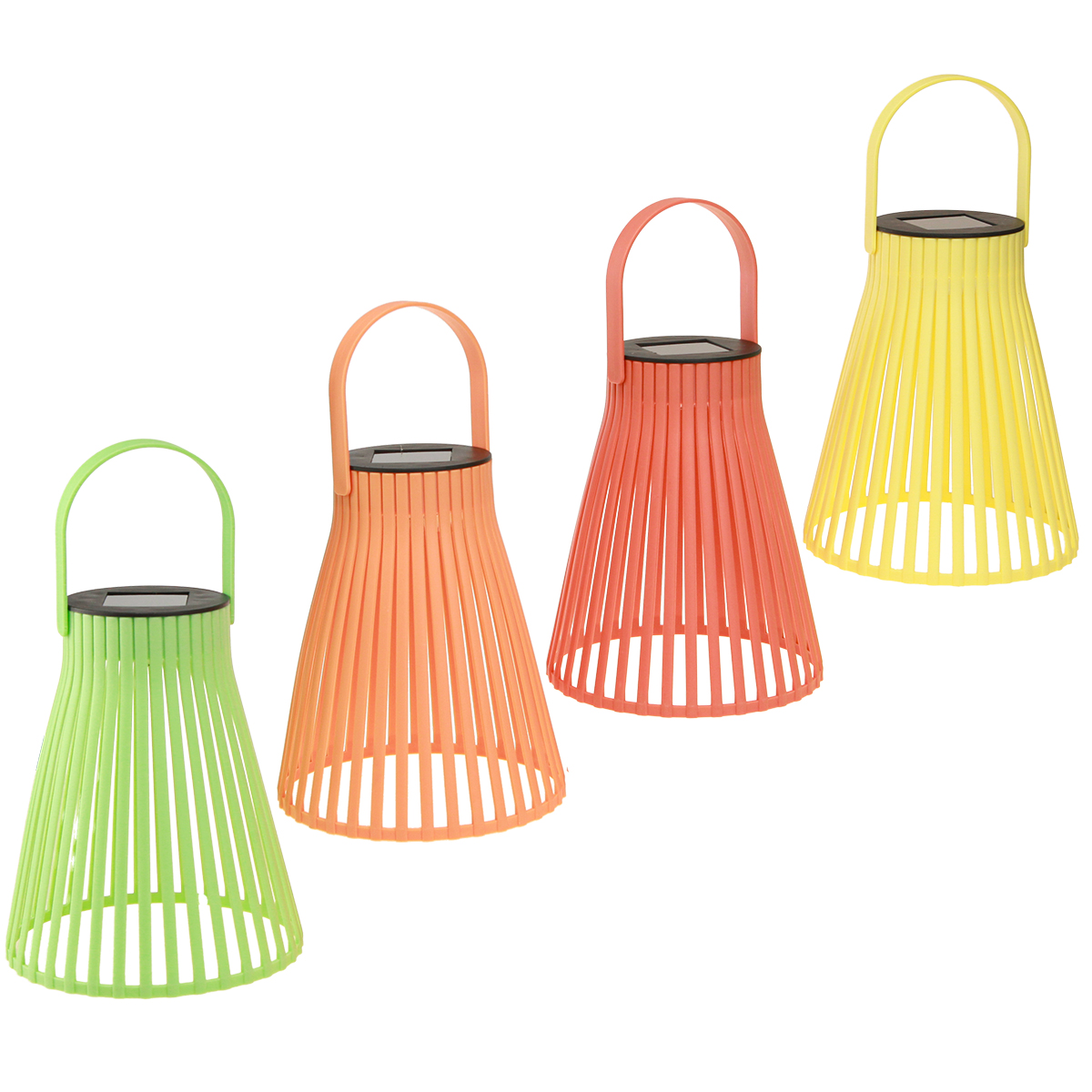 Korosta ulkotilaasi värikkäillä aurinkopuutarhalyhtyillämme, jotka ovat roikkuvat LED-valot neljässä kirkkaassa värissä: vihreä, keltainen, oranssi ja punainen Nämä neljä lyhtyä eivät vain tuo valoa puutarhaasi, vaan antavat sille raikkaan, kesäisen ilmeen. Jokainen aurinkovalaisin on varustettu kestävällä retrohenkisellä kartion muotoisella lampunvarjostimella, joka vakuuttaa tyylikkäillä aksenteilla vintage-ilmeessä. Puutarhalyhdyn litistettyyn kärkeen integroitu aurinkomoduuli tarjoaa ympäristöystävällistä energiaa, kun taas ajastintoiminto 6 tuntia päällä ja 18 tuntia pois päältä takaa optimaalisen käytön. Olipa kyseessä riippuva koriste kesäjuhliin tai kohokohta terassille ja parvekkeelle - nämä puutarhavalot ovat täydellinen valinta joka tilanteeseen.