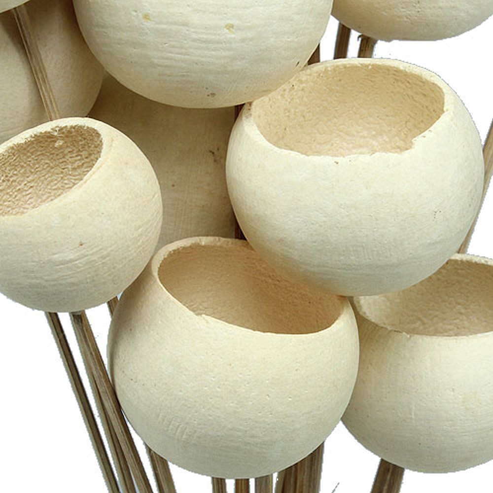 Sinulla on lisäksi mahdollisuus lyhentää varsi ja kokonaisuus mukautuu sitten kätevästi dekoideaasi, varsinkin kun sekoituksessa hedelmiä on saatavana kolmea eri kokoa. Voit tietysti käyttää myös vain pyöreitä hihoja ja luoda näin seppeleen tai pienen hautarauhan, joka saa kauniin, modernin korostuksen pyöreiden päiden avulla. Lisäksi voit myös täyttää hedelmähylsyjä ja esimerkiksi vahan ja sydänlangan kanssa kynttiläksi.