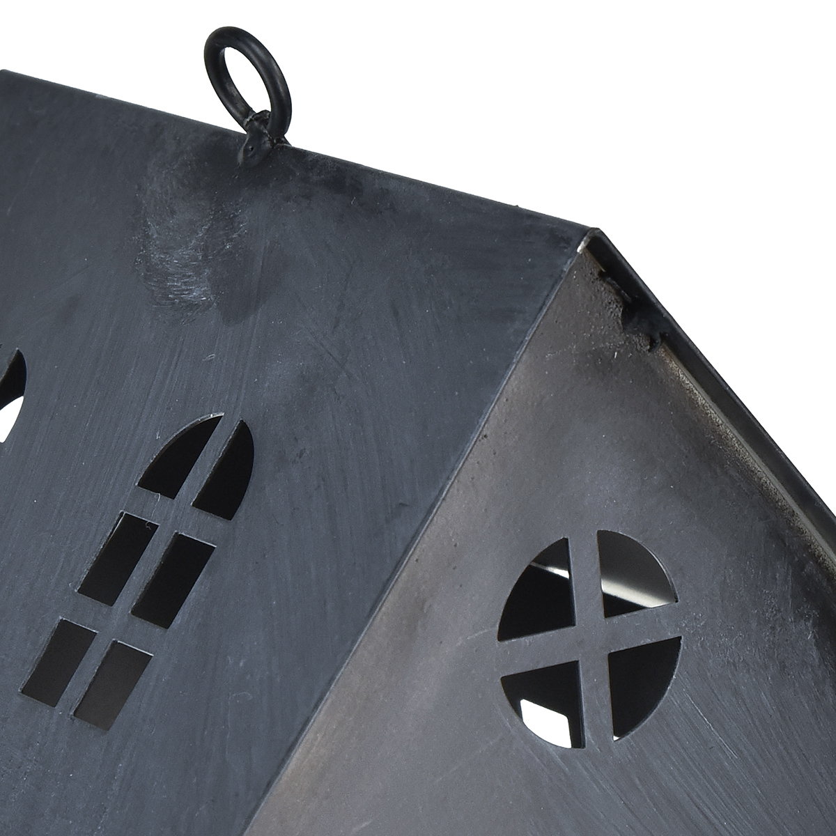 Antiikkiharmaa lintutalo ripustuslenkillä ei vain tarjoa linnuille viehättävää pakopaikkaa, vaan toimii myös luovana ripustimena kasveille tai tunnelmallisena lyhtynä seuraavissa puutarhajuhlissasi. Pienillä ikkunoilla ja kartiomaisella katolla tämä riippuva metallinen lintumaja heijastaa klassista arkkitehtuuria miniatyyrinä.