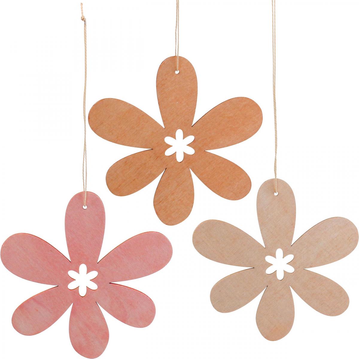 Deco kukka puinen riipus puinen kukka oranssi/pinkki/keltainen 12 kpl