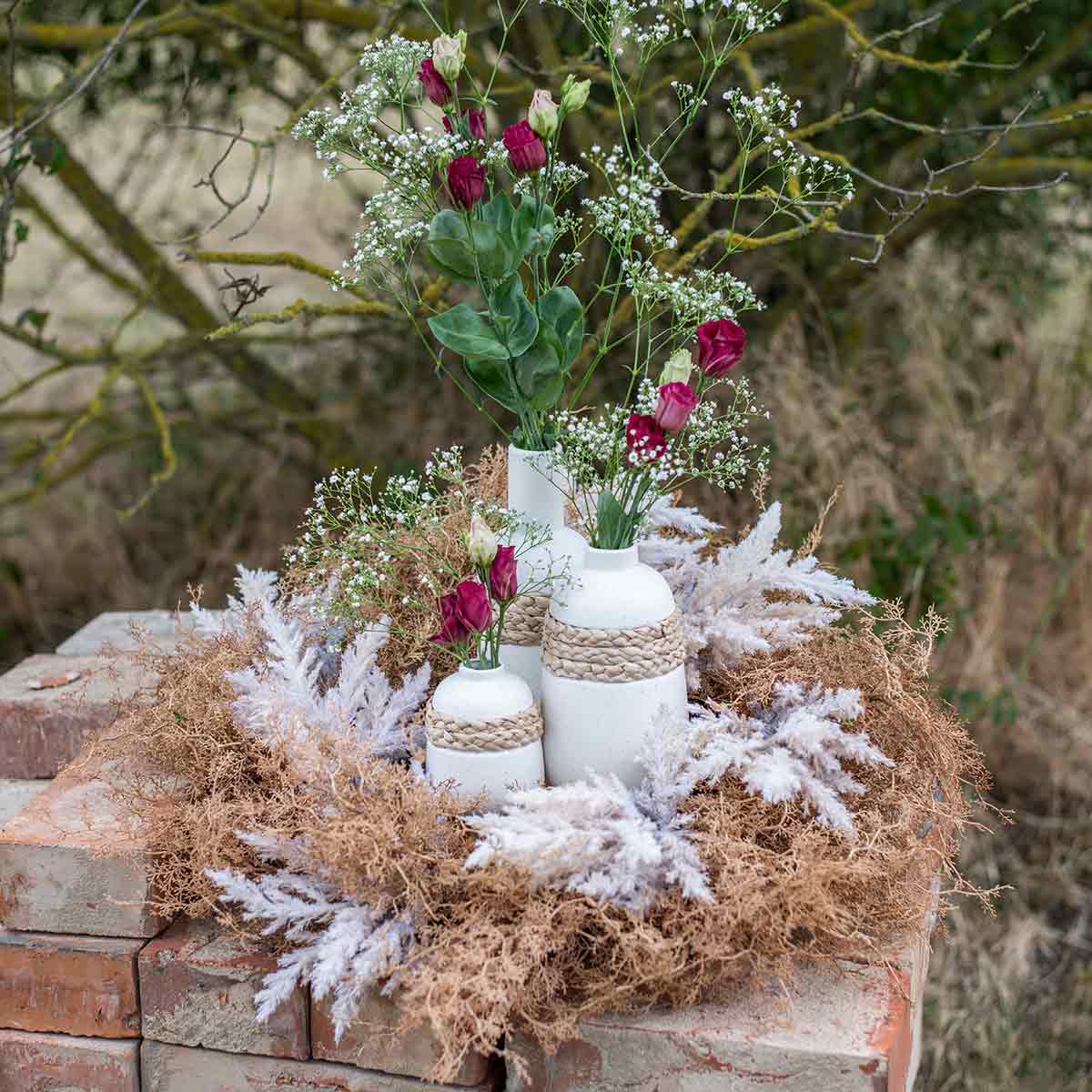 Sen ansiosta keinotekoisilla kuivilla ruohoilla varustettua koristeseppelettä on helppo käyttää pöydän koristeena tai voit yksinkertaisesti ripustaa sen seinälle. Seinäseppeleen voit koristella värillisillä nauhoilla tai lisäksi silkkikukkia tai kausiluonteisia lisävarusteita, kuten riipuksia kiinnitettäväksi tai kiinnitettäväksi.