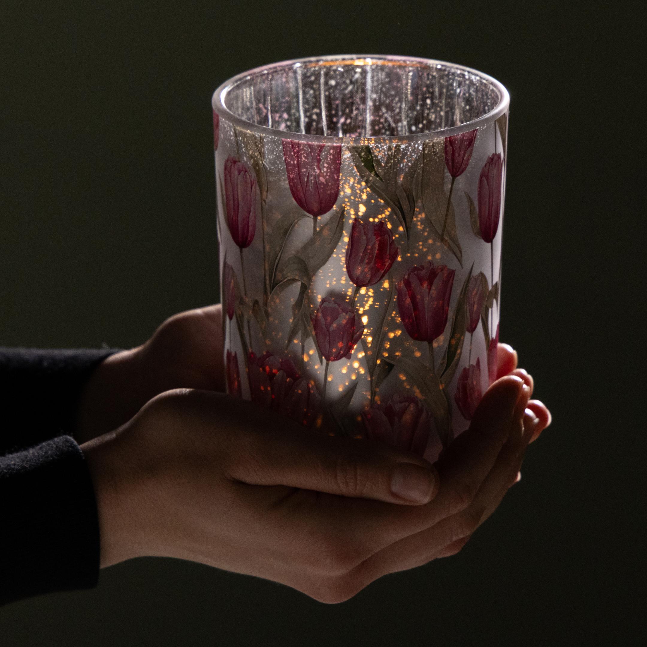 Elegantti tulppaaniaiheinen lyhty tunnelmalliseen kevään koristeluun, 12,5 cm, 2 kpl.