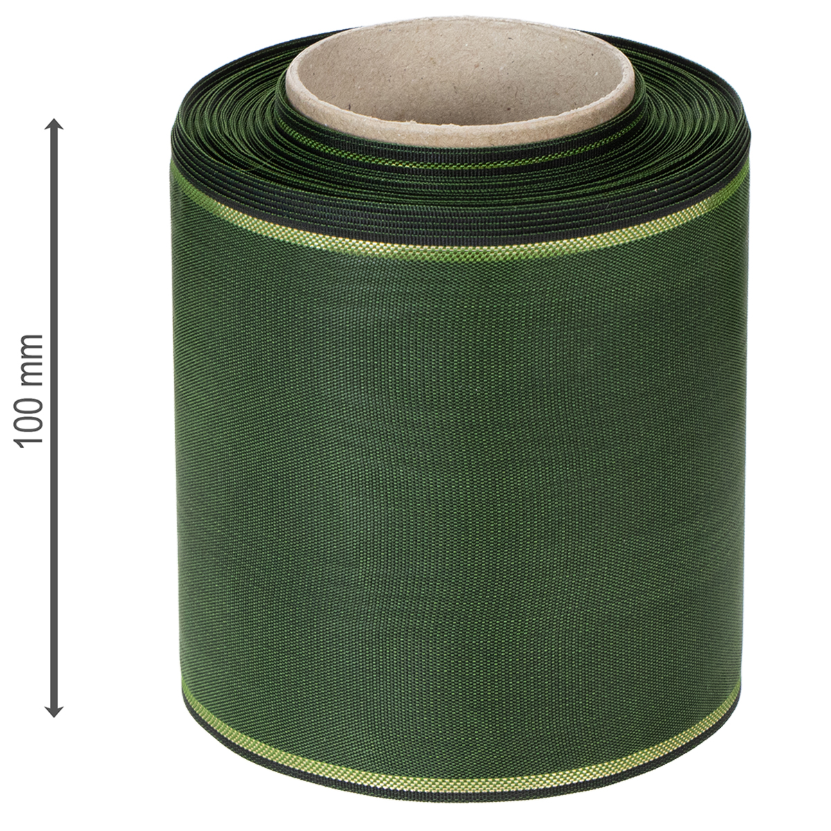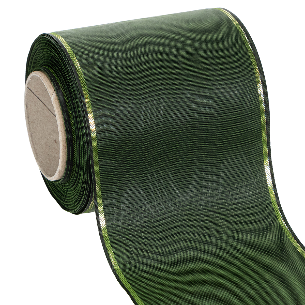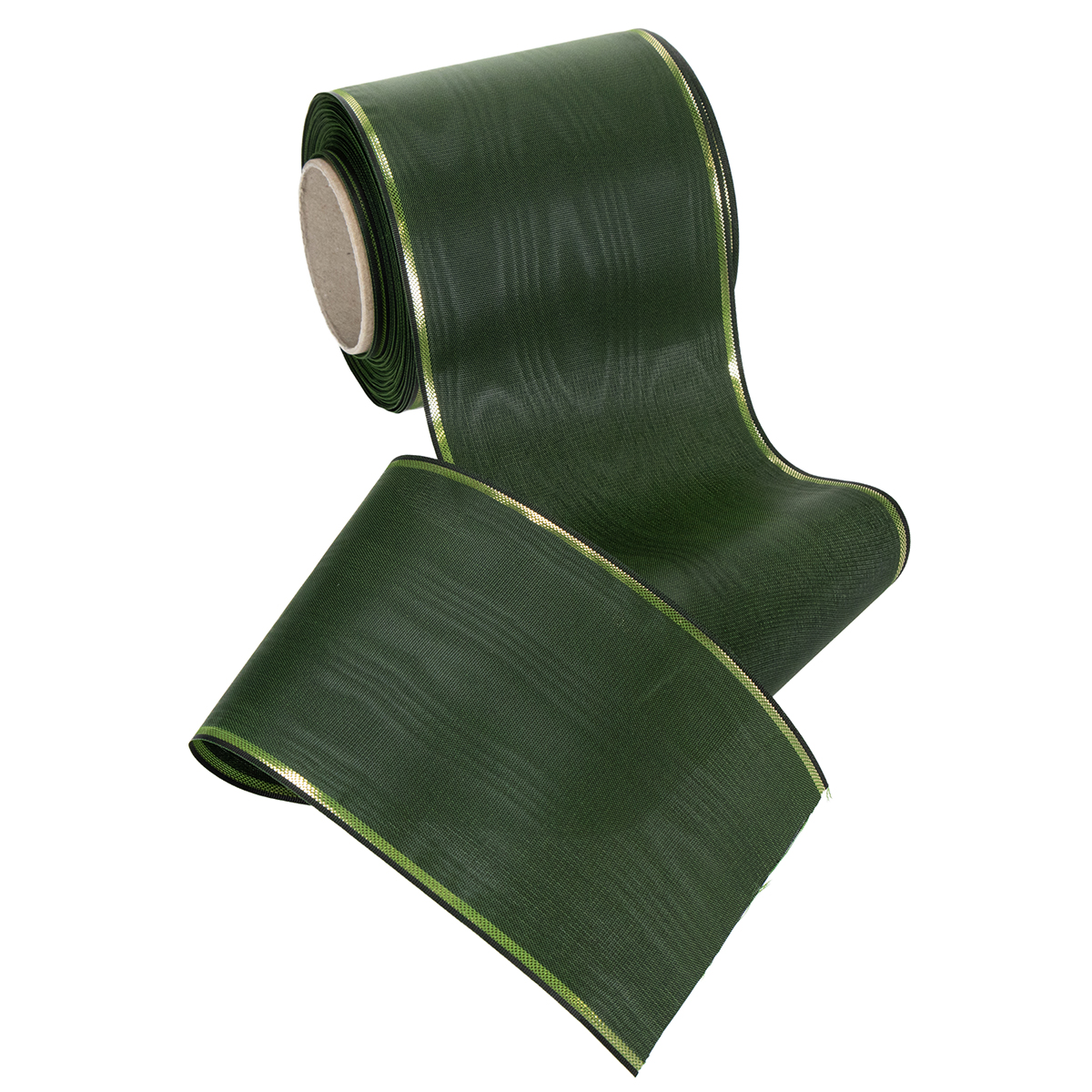 Elegantti vihreä moaré-kuvioinen seppelenauha kultareunalla, 100 mm x 25 m, hautajaiskukkakauppoihin ja koristeluun