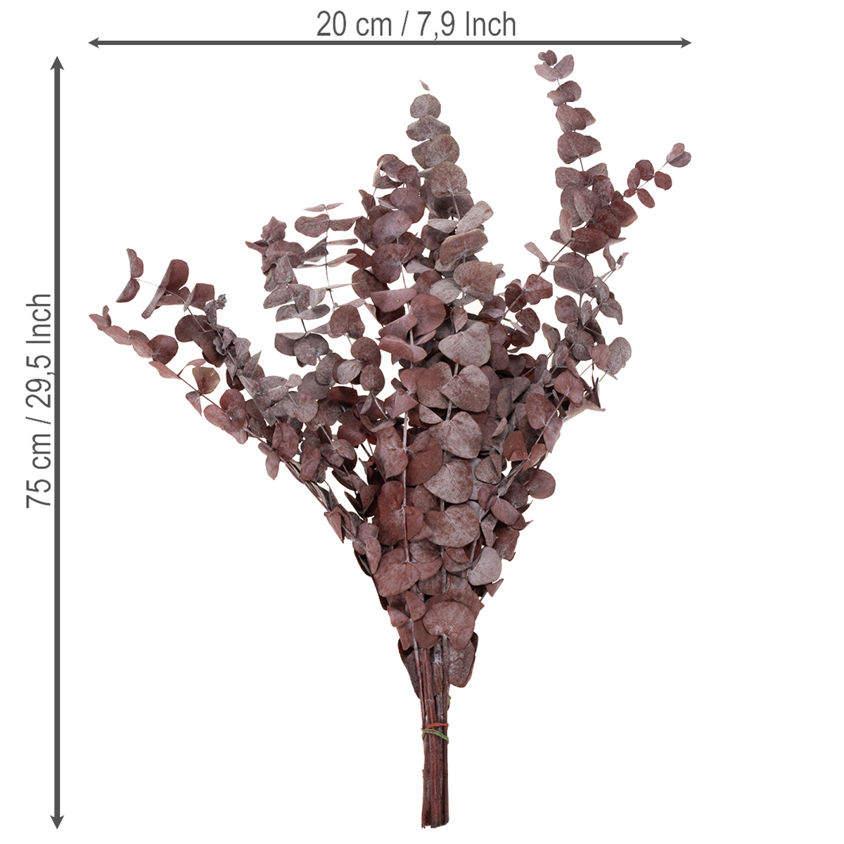 Eukalyptuksen oksia, säilöttyä eukalyptusta, kuivattuja kukkia, punainen, 75 cm, 150 g