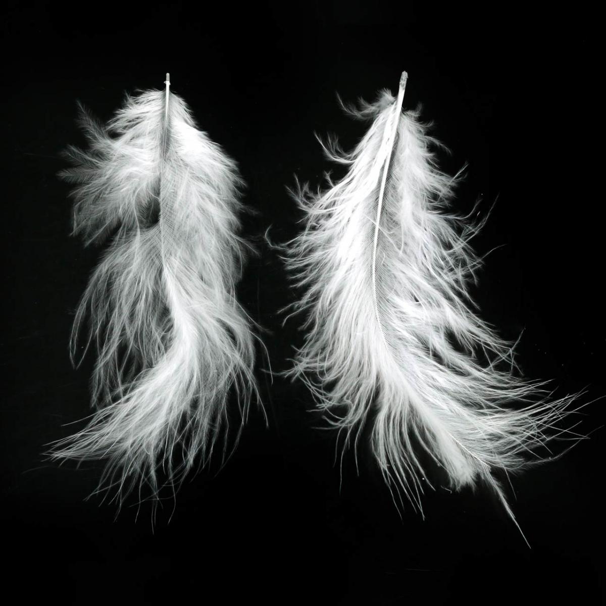 Hienostuneeseen lintujen höyhenen koristeluun voit yhdistää valkoiset höyhenet myös myymälämme mustiin untuvahöyheniin tai helmikanojen höyheniin.