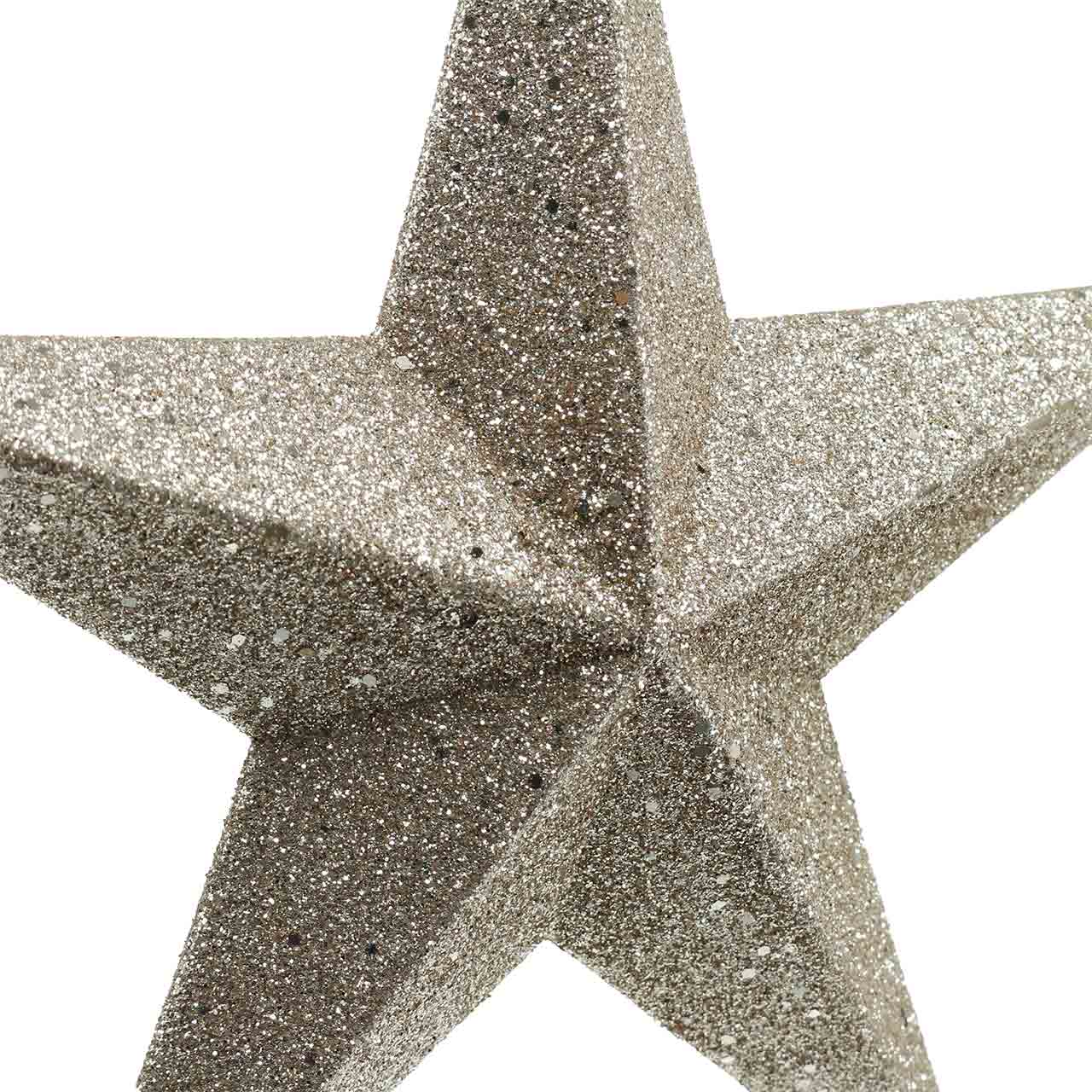 Käytä samppanjanvärisiä glitteritähtiä adventin aikaan pöydän koristeena levittämällä juoksupyörään tai ripusta ne joulukoristeeksi joulukuuseen. - Myös koristeena suuren oviseppeleen keskellä tai ikkunakoristeena tekevät kimaltelevista jouluripustimista erittäin hienoja!