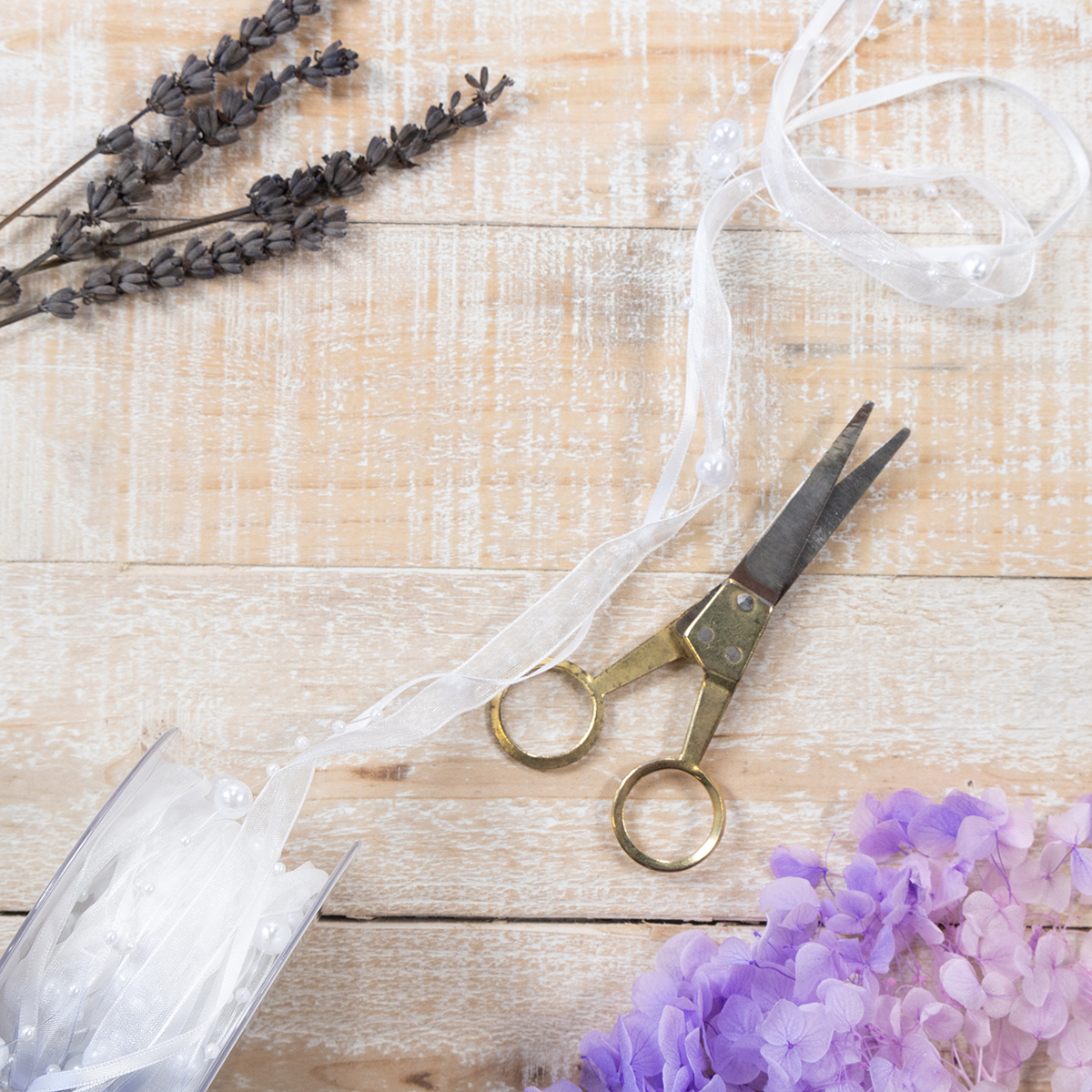 Voit käyttää sitä myös hääasetelmassa ja asettaa sen sitten kukka-asetelman poikki. Yleisesti ottaen voit käyttää koristenauhaa eräänlaisena toistuvana teemana läpi koko hääkoristelun ja käyttää sitä esimerkiksi pöytäpeitteiden sitomiseen yhteen tai kasvien kukkaruukkujen ympärille kietomiseen tai jopa seinäkoristeiden pitsittämiseen sillä. Lisäksi voit sisällyttää kauniin helminauhan myös kukkatyttöjen mekkoihin ja koristella sillä myös hääkimpun hellästi!