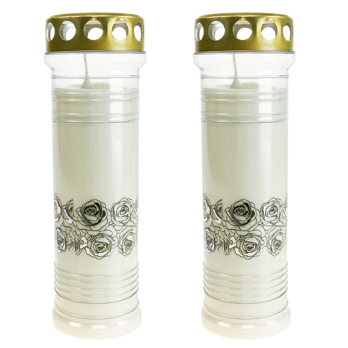 Hautakynttilöitä ruusuja valkoinen suruvalo Ø7cm K23,5cm 100h 2kpl