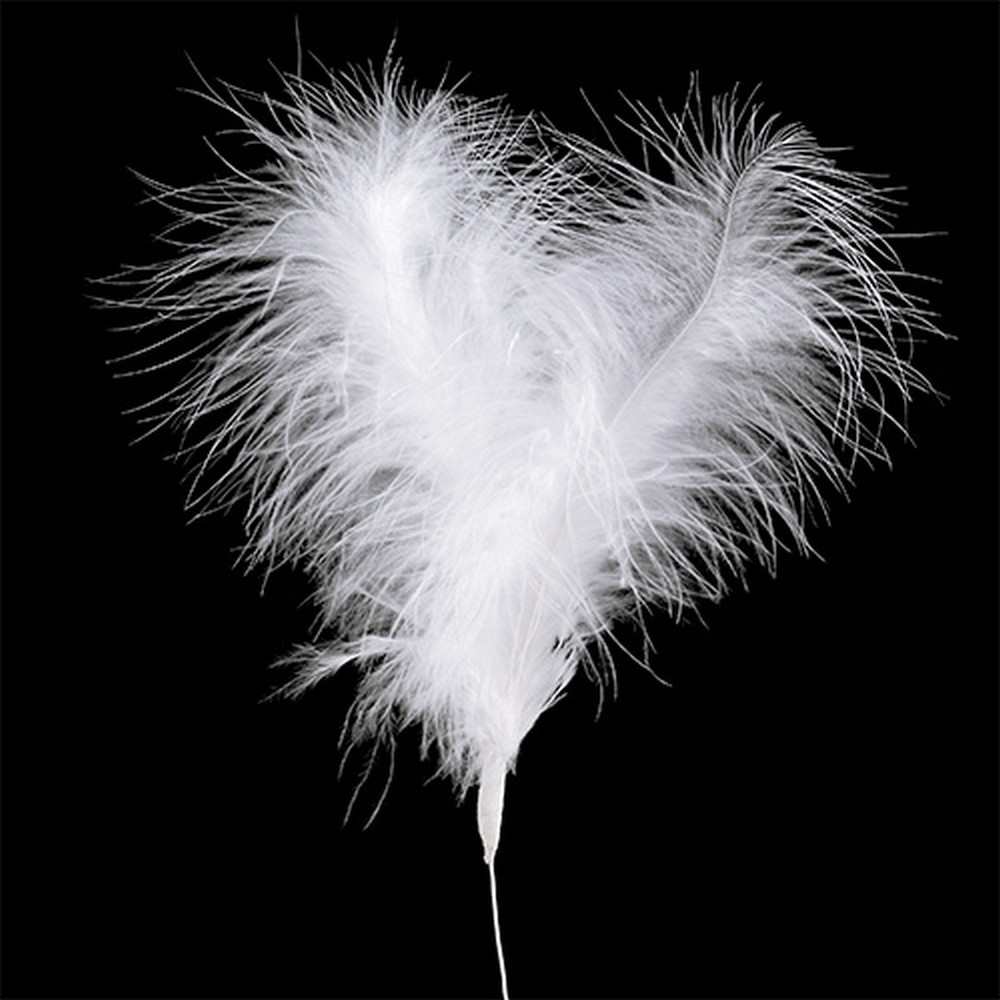 Pörröiset, valkoiset luonnon höyhenet ovat muodoltaan pieniä kimppuja, joista kukin on kiinnitetty taipuisaan lankaan, ja niitä tarjotaan yhteensä 6 kappaleen setissä. Kunkin tulpan kokonaispituus on noin 27 senttimetriä, ja höyhenet ovat kukin jopa 15 senttimetriä korkeita. Huomioithan, että höyhenet ovat luonnontuote, jossa on luonnollisia vaihteluita, joten kaikki sarjan koristesulat eivät voi olla samanpituisia ja -muotoisia.