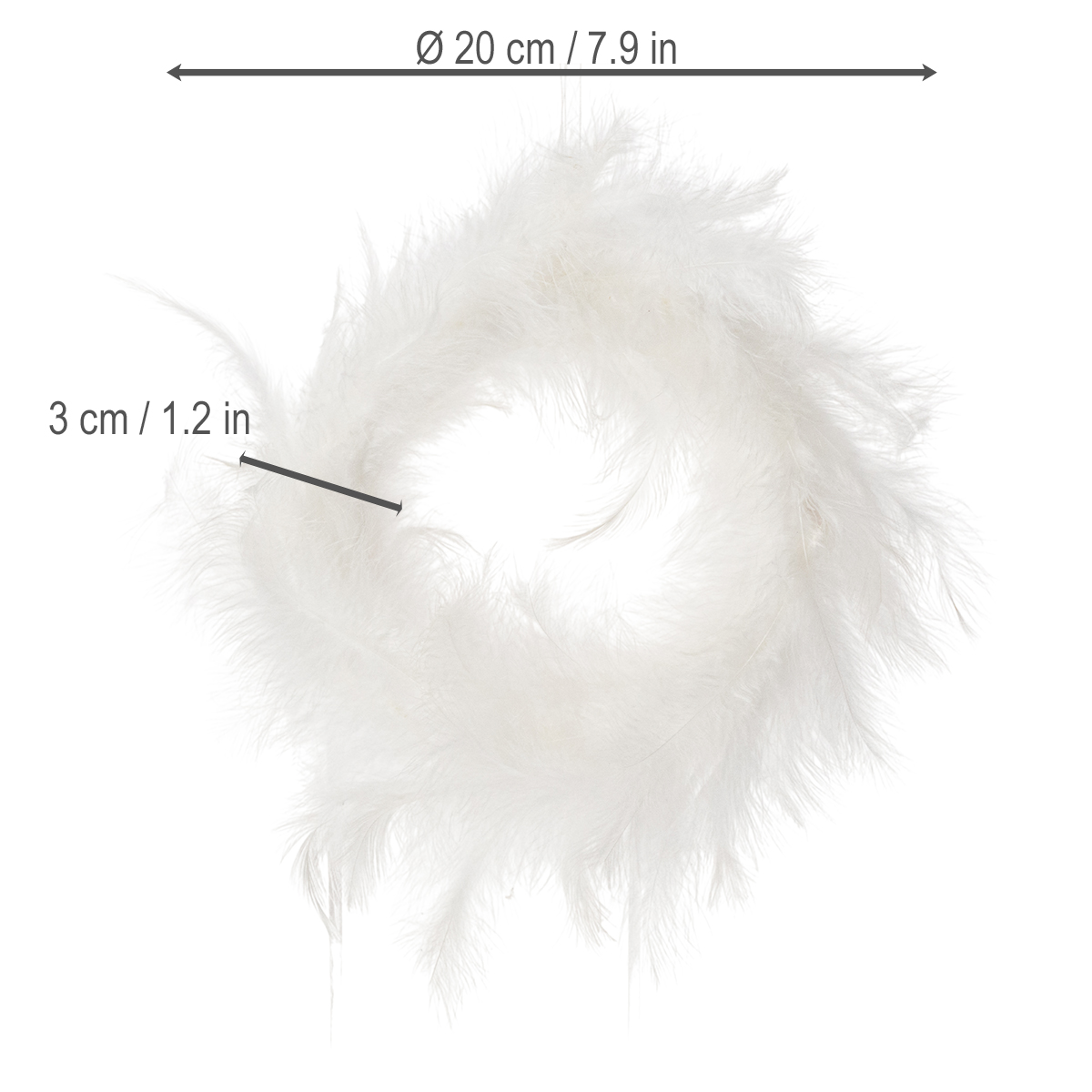Höyhenseppele on erityisen viehättävä monipuolisuutensa ansiosta. Esimerkiksi häissä siitä tulee todellinen katseenvangitsija: se sopii hääpöydän koristeeksi korostamaan romanttista tunnelmaa tai herkäksi aksentiksi kukka-asetelmassa, ehkä yhdistettynä valkoisiin ruusuihin tai eukalyptukseen. Se tarjoaa myös luovia mahdollisuuksia pääsiäiskoristeisiin – olipa se sitten sijoitettuna minimalistiseksi pääsiäispesäksi pöytäasetelmaan tai ovelle tervetulotoivotuksena. Kompaktien 20 cm:n mittojensa ansiosta se sopii sekä pieniin että suuriin huoneisiin näyttämättä sotkuiselta. Luonnollisen ja yksinkertaisen tyylin ystäville tämä koristeseppele sopii maalaismaisiin elementteihin, kuten juuttiin tai tyylikkääseen samettinauhaan, korostaakseen pehmeitä höyheniä. Erityisen viehättävä ominaisuus: yksivärinen valkoinen sopii yhteen lähes minkä tahansa värin kanssa, olipa se sitten romanttinen vaaleanpunainen, elegantti kulta tai raikas vihreä.