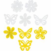 Siten voit luoda ikiomia ikkunakoristeita, jotka lumoavat raikkaan ja iloisen minkä tahansa huoneen. Sinulla on myös mahdollisuus tarttua huopahahmoihin ja siten esimerkiksi kukkaruukku, maljakko tai jopa kollaasi kiinni. Ja jos järjestät puutarhajuhlat, voit myös kiinnittää huopahahmot paikkakorttiin tai banneriin tai tehdä niistä kollaasin!