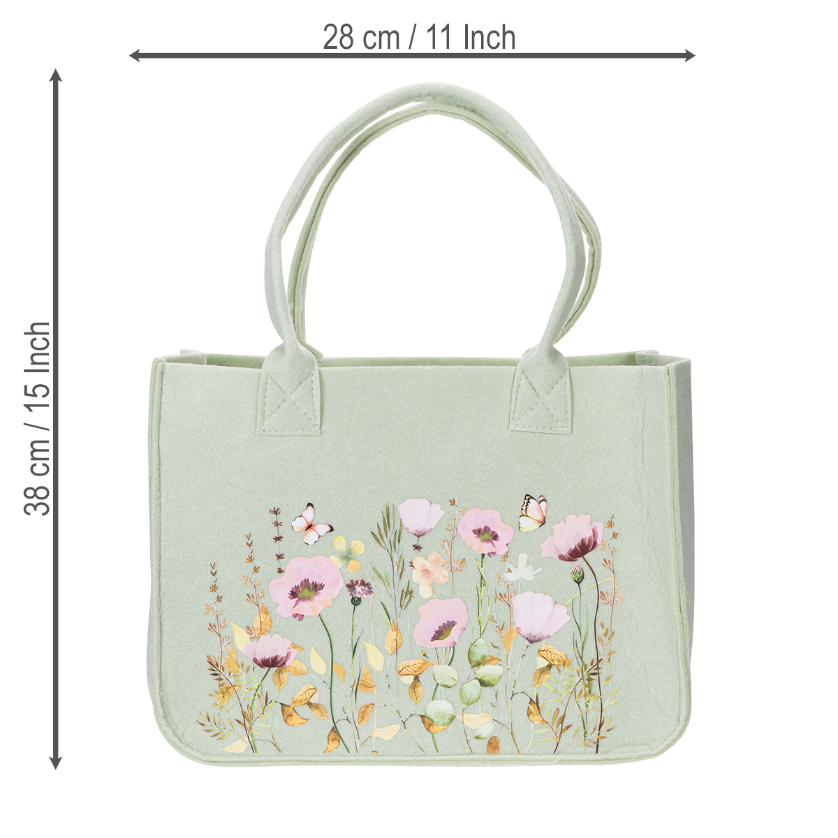 Kestävästä huovasta ja elegantin vihreästä valmistettu laukku tuo ripauksen luontoa ja huokuu kesäistä viehätystä. Rakkaudella suunniteltu kukkakuvio etupuolella antaa sille ainutlaatuisen ilmeen, joka tuo mieleen kukkivat kesäniityt. Olipa kyseessä sitten arkipäivän asiointi, tyylikäs kumppani toimistossa tai jopa käytännöllinen ostosreissu, tämä laukku sopii lähes mihin tahansa tilaisuuteen. Ja mikä parasta? Se tarjoaa riittävästi tilaa kaikelle, mitä tarvitset arkeen tai retkille.