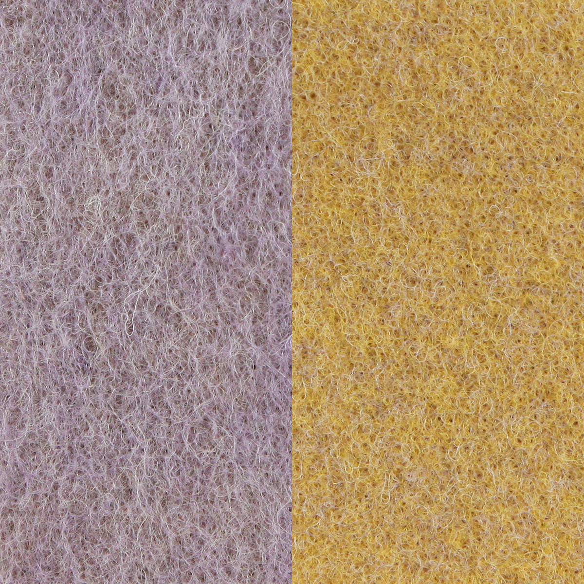Villanauhan toinen puoli on sinapinkeltainen, kun taas villahuovan toinen puoli on väriltään violetti. Keltainen paistaa hieman myös purppuranpunaisen huopavillan läpi luoden houkuttelevan, melkein kirjavaisen ilmeen. Monivärinen huovasta valmistettu koristenauha tarjoaa lukemattomia koristelumahdollisuuksia!