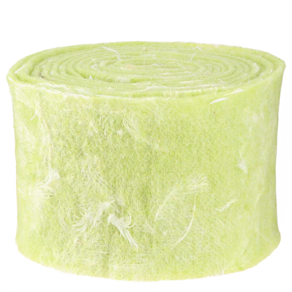 Pääsiäiskoristeisiin sopiva villanauha on valmistettu vihreänvärisestä aidosta neitsytlampaiden villasta. Erityistä pääsiäisen ja kevään ilmettä varten mukana on myös höyhenet ilmaiseksi! Älä huoli, sinun ei tarvitse liimata niitä erikseen. Koska hanhen höyhenet on jo sisällytetty koristekankaaseen. Näin voit löytää valkoiset höyhenet joskus ylemmäs kankaassa ja joskus hieman piilossa. Tämä koristelu tekee myös villanauhasta ainutlaatuisen, sillä mikään huopanauha ei ole samanlainen!
