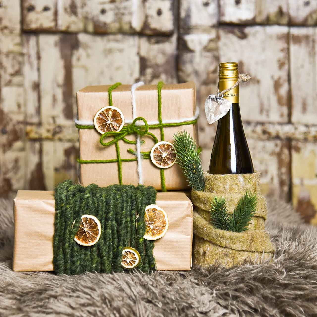 Tummanvihreän värityksensä ansiosta tämä huopanaru sopii erityisen hyvin teemajuhlien tai näyttämön tunnelmalliseksi koristeeksi, ja sen voi esimerkiksi kietoa koristeeksi oljista ja styroksista tehtyjen seppeleaihioiden ympärille. Tai tee tavallisista maljakoista ja tyhjistä viinipulloista ainutlaatuisia koristeellisia kohokohtia kietomalla ne tiukasti villanarulla ja asettamalla ne sitten näyteikkunaan tai ruokapöydälle. Lisäksi tummasta huopanauhasta tehdyt rusetit koristavat maalaistyylisiä kukka-asetelmia ja kukkakimppuja sekä maalaismaisia kasviastioita ja kulhoja, jotka on valmistettu puusta ja metallista.