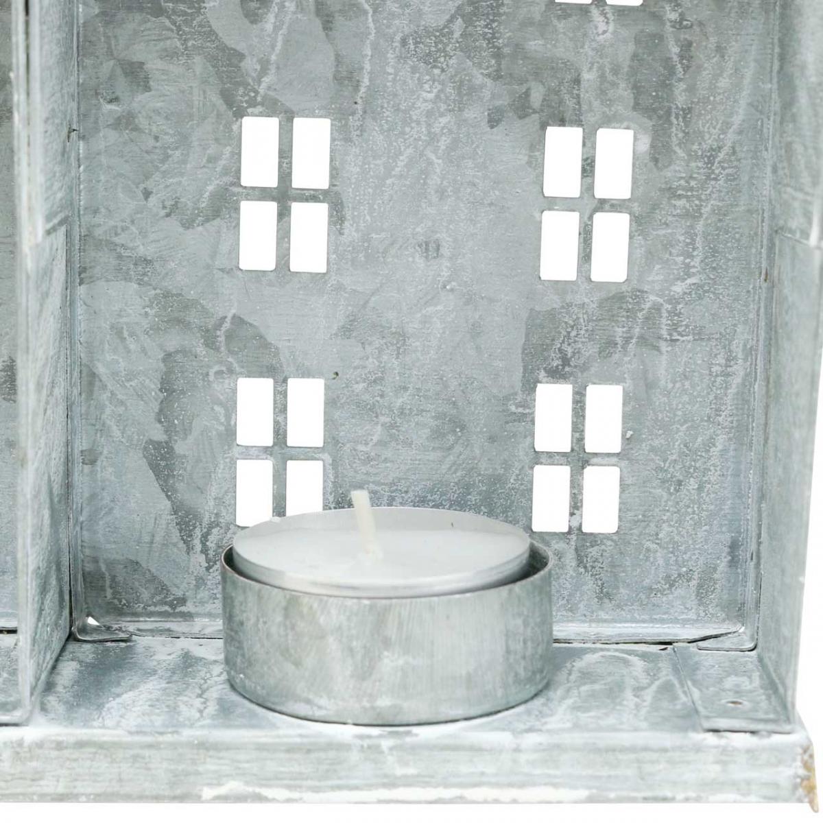 Ikkunakoristelu joulu, lyhty, diorama talo sarja, metalli koristeet hopea shabby chic L20cm K20cm
