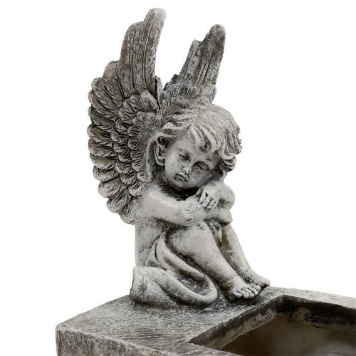 Kokonaisuudessaan harmaalla enkelillä varustettu istutusastia on noin 17 senttimetriä korkea, kun taas itse kulho vie noin 4,7 senttimetriä. Muistohahmon pituus on noin 16 senttimetriä ja leveys noin 9 senttimetriä. Aukon koko on noin 8,2 x 6,3 senttimetriä. Saat astian kuljetusturvallisesti pahvilaatikossa.