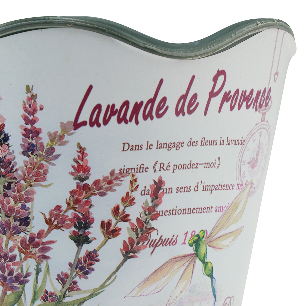 Ruukku on kokonaan valmistettu kestävästä muovista. Laventelin istutuskone sopii siksi istutuskoneeksi. Provencen laventelipeltoihin viittaava ranskankielinen kirjoitus ja retro-aiheinen muovinen kukkaruukku huokuu nostalgiaa. Reunat ovat kauniisti aaltoilevat.