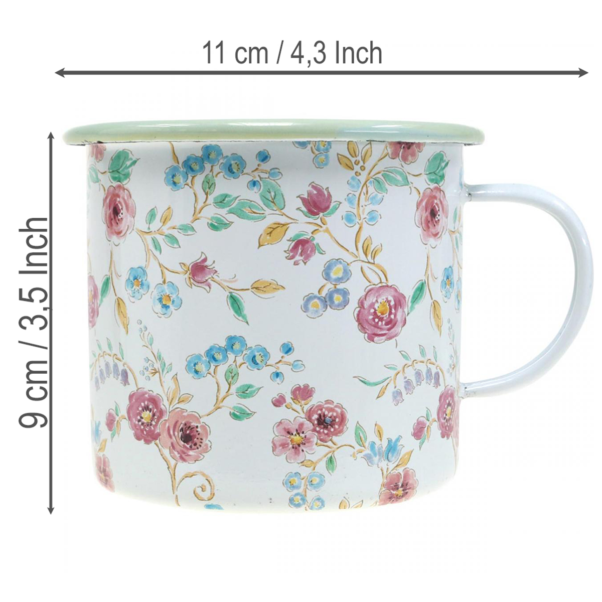 Istutuskuppi ruusut emali koristekuppi kahvalla valkoinen Ø9.5cm