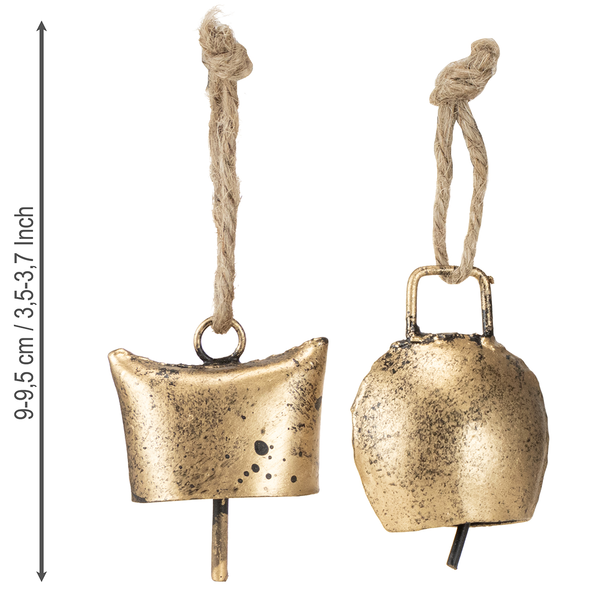 Tämä metallinen kellomainen joulukuusenkoriste yhdistää nostalgisen viehätyksen moderniin monipuolisuuteen. Lämmin kultainen sävy ja autenttiset vintage-vivahteet tuovat juhlavan säväyksen mihin tahansa huoneeseen. Kellot ovat täydellisen kokoisia, noin 5 cm, ja niissä on maalaismainen juuttinaru – ihanteellinen luonnollisen näköiseen ripustettavaan koristeeseen. Setti sisältää 8 erilaista kelloa, joiden avulla voit luoda harmonisia ja vaihtelevia yksityiskohtia.