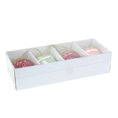 Ripustettavan tammenterhon, mukaan lukien kultainen lanka, kokonaispituus on noin 17 senttimetriä, kun taas itse dekopähkinä on noin 8 senttimetriä pitkä ja se on lajitellussa laatikossa, jossa on 4 erilaista pähkinää. Puun hedelmä ei ole vain neljässä pastellisävyssä (kiiltävän punainen, turkoosi, violetti ja vaaleanpunainen), vaan se on vielä huolellisesti peitetty kultaisella kiilteellä yläpuolella.