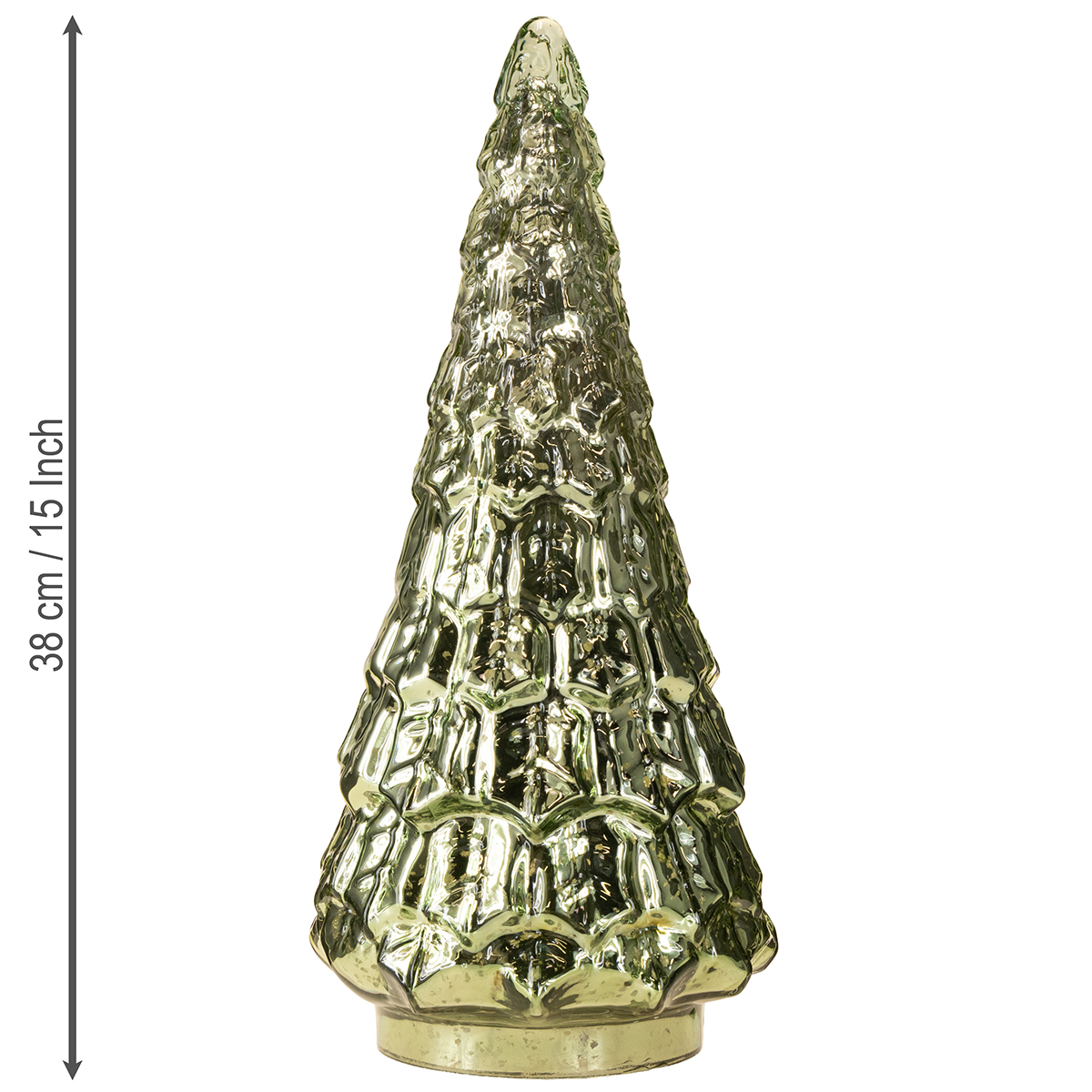 Vihreä joulukuusi LED-valoilla tekee vaikutuksen paitsi kompaktilla muotoilullaan, myös hienostuneella veistoksellisen kuusen muodon, materiaalin ja valon leikin yhdistelmällä. Kuusi on valmistettu lasista ja valikoitujen vintage-värisiirtymien ansiosta paljastaa kultaisia valoaksentteja, jotka yhdessä perusvärin hopeanvihreän hohteen kanssa luovat henkeäsalpaavan visuaalisen vaikutelman. Lisäksi se seisoo tukevalla muovijalustalla, jossa on paristolokero, joten se voidaan sijoittaa mihin tahansa. Paristokäyttöinen LED-valo tarjoaa tasaisen, lämpimän hehkun, joka tuo tunnelmallista valoa ja kodikkuutta jopa pimeimpinä talvipäivinä. Täydellinen käytettäväksi erilaisissa sisustustyyleissä, kuten shabby chic -tyyliin, maalaistaloon tai klassiseen vintage-tyyliin!
