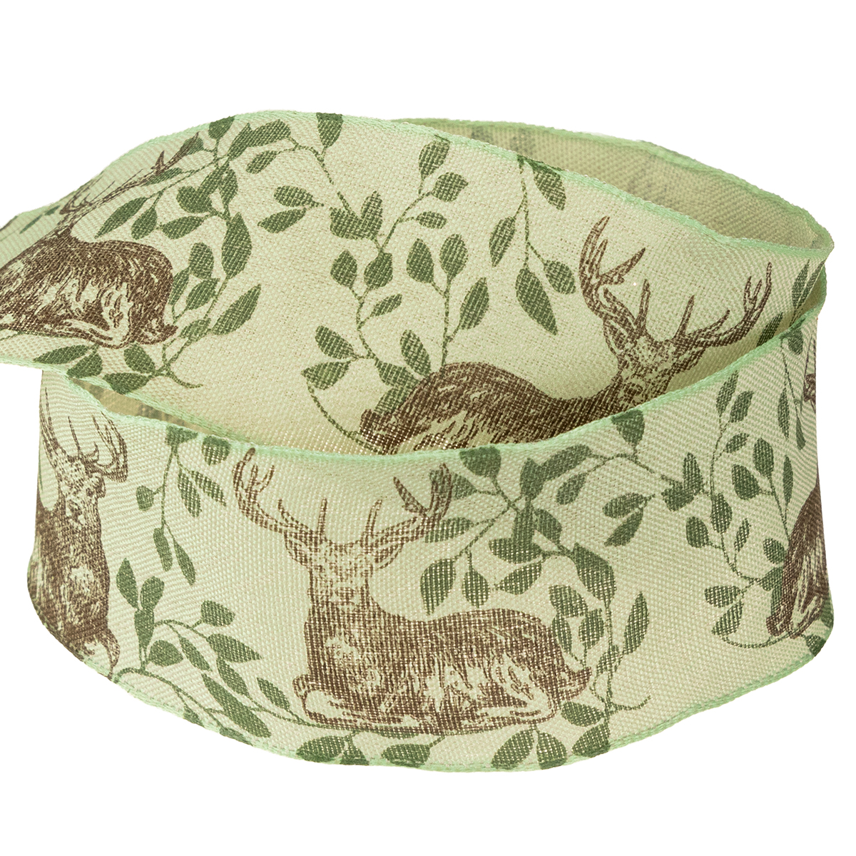 Joulunauha peurakuvioisella nauhalla vaaleanvihreä 40mm 20m