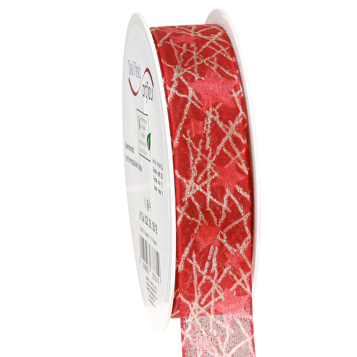 Joulunauha tähdillä verkkopunainen ja kulta 25mm 18m