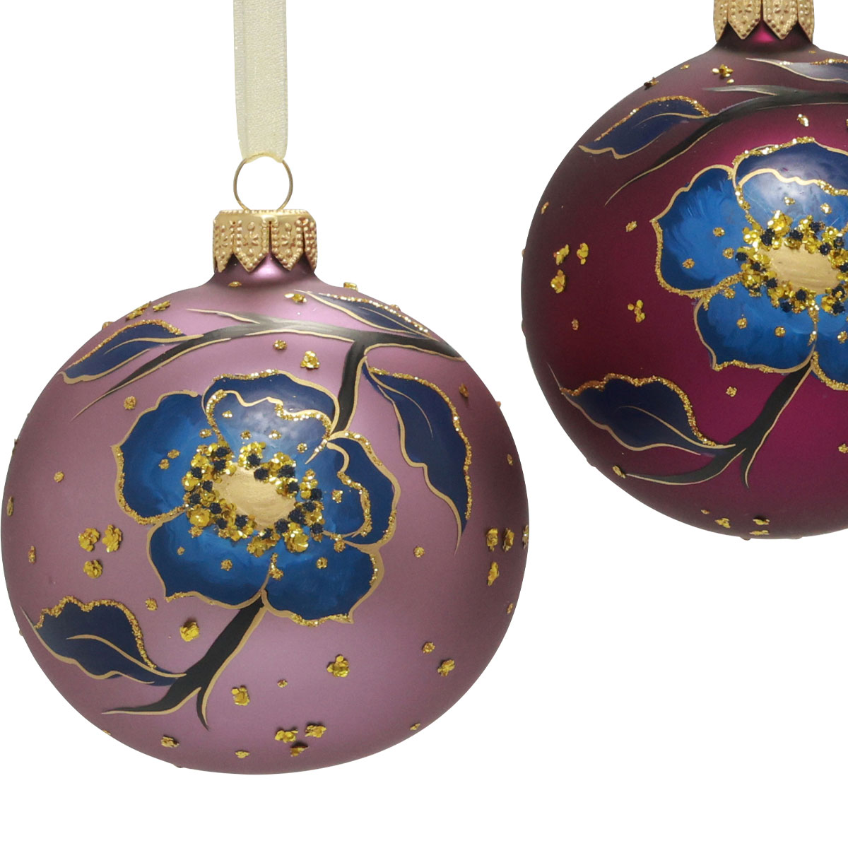 Joulupallot lasipurppura joulukuusipallot kukka Ø8cm 6kpl