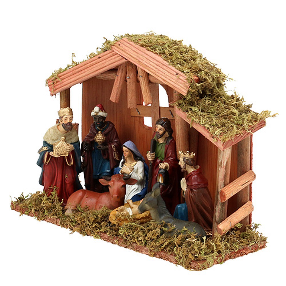 Kaikki hahmot ovat yksityiskohtaisia ja rakkaudella maalattuja kirkkain värein. Tämä antaa elävän kuvan Jeesuksen syntymästä, ja kompaktin kokonsa ansiosta se mahtuu täydellisesti joulukuusen alle. Voit myös laittaa koko kokonaisuuden pienelle pöydälle ja koristella sen sitten edelleen. Voit lisätä esimerkiksi pienen valonjohdon, lisää puisia hahmoja, enkelin, lisää sammalta ja jopa olkia.