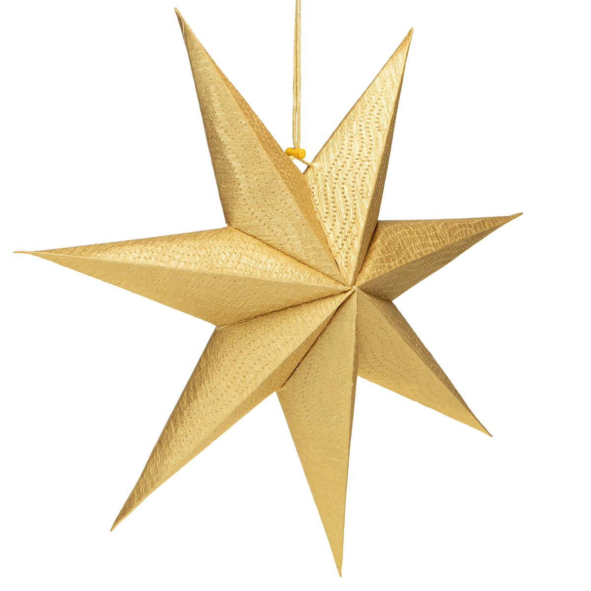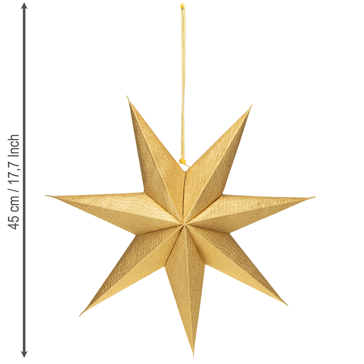 Tämä kultainen paperijoulutähti ei ole ainoastaan visuaalisesti upea, vaan myös huolellisesti suunniteltu. Reilun 45 cm:n kokonsa ansiosta se herättää huomiota pysyen samalla hillityn eleganttina. Kultainen pinnoite hohtaa kauniisti valossa ja tuo ripauksen hienostuneisuutta mihin tahansa huoneeseen. Tähtien mukana tulee käytännöllinen puuvillainen ripustin ja narupysäytin, joten ne on uskomattoman helppo ripustaa – monimutkaista kiinnitystä ei tarvita. Nämä paperitähdet sopivat käytettäväksi myös keinovalon kanssa. Kuvittele pehmeä, lämmin hehku, joka siivilöityy kultaisen paperin läpi ja valaisee herkät kuviot. Yksinkertaisesti taianomaista!