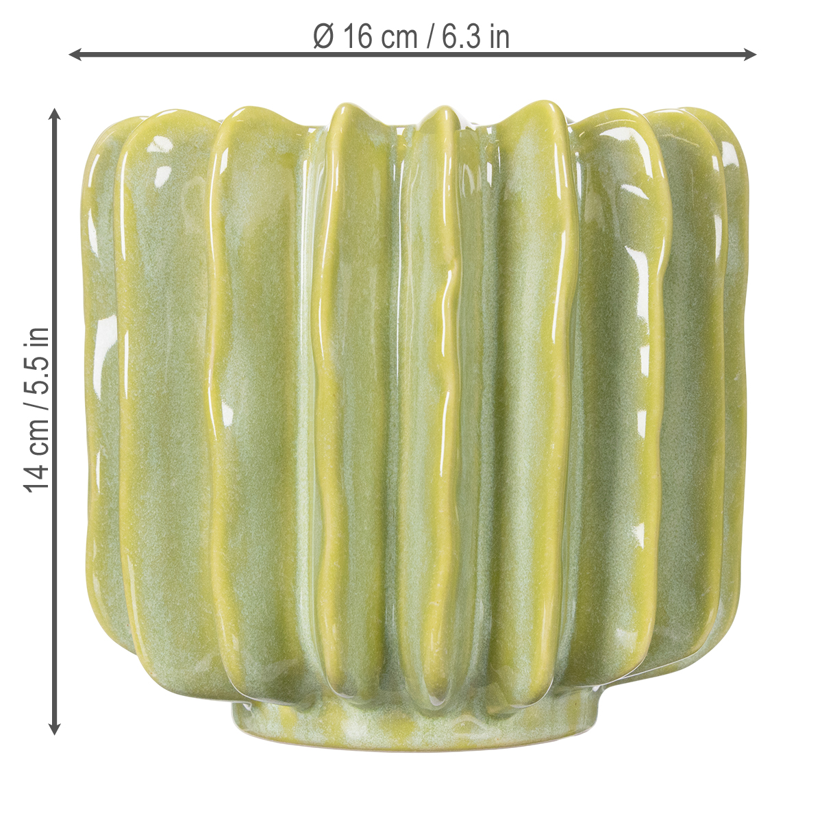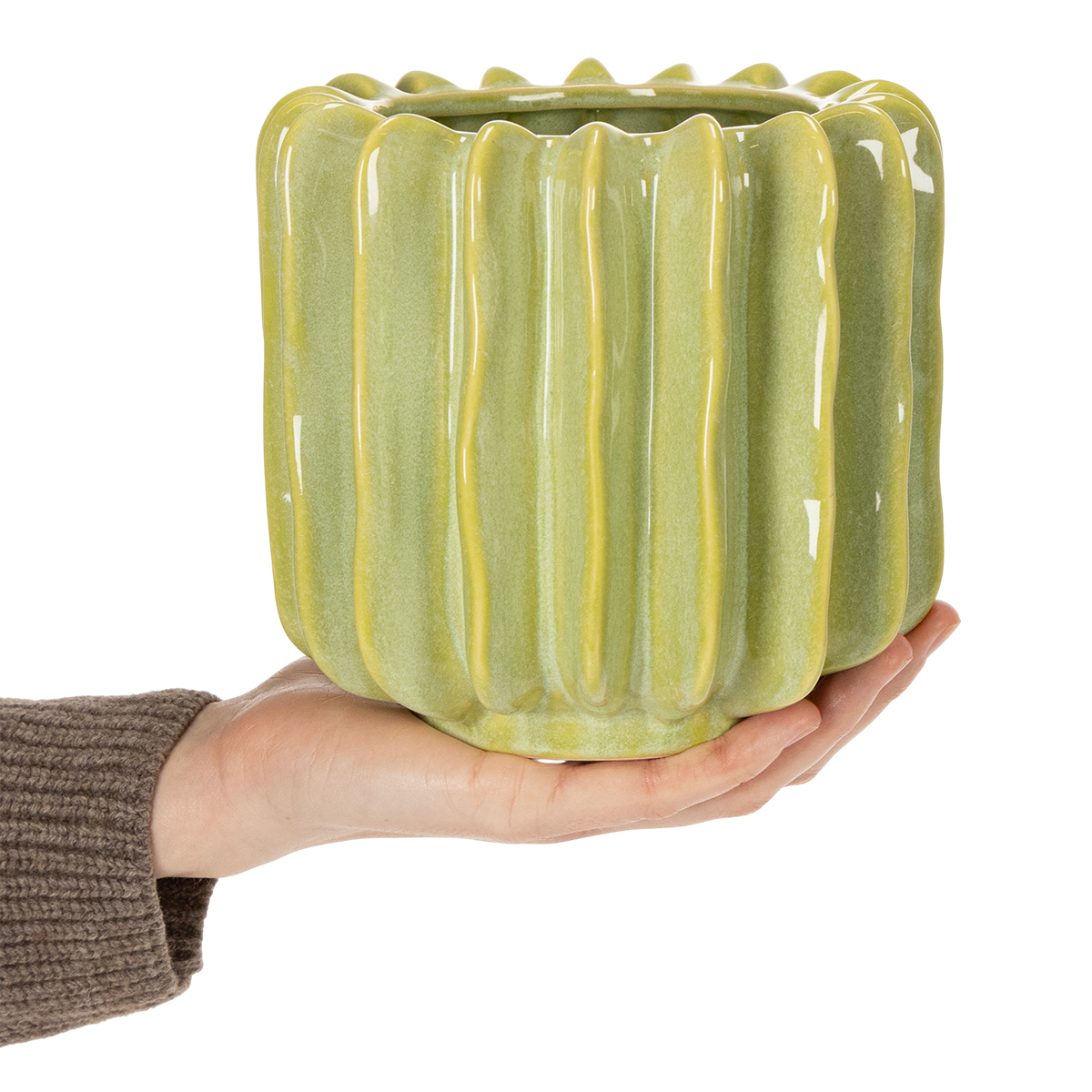 Korkealaatuinen keramiikka ja teksturoitu, uritettu muotoilu tekevät tästä ruukusta paitsi käytännöllisen myös tyylikkään koriste-elementin. Se tarjoaa runsaasti tilaa suosikkikasveillesi – olipa kyseessä sitten kaktus, mehikasvi tai pieni viherkasvi. Olipa tyylisi sitten boheemi, minimalistinen tai urbaani viidakko, tämä design-kukkaruukku täydentää lähes mitä tahansa sisustusta ja on taatusti keskustelunaihe.