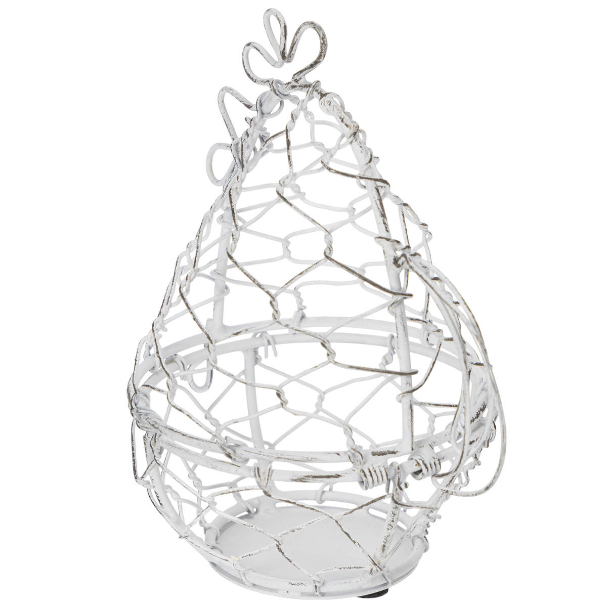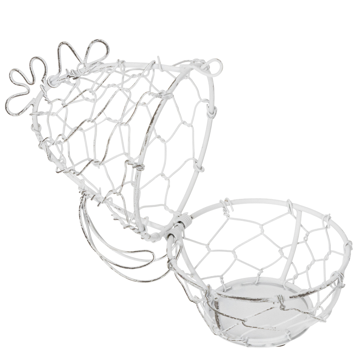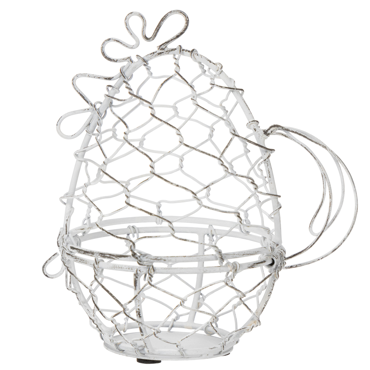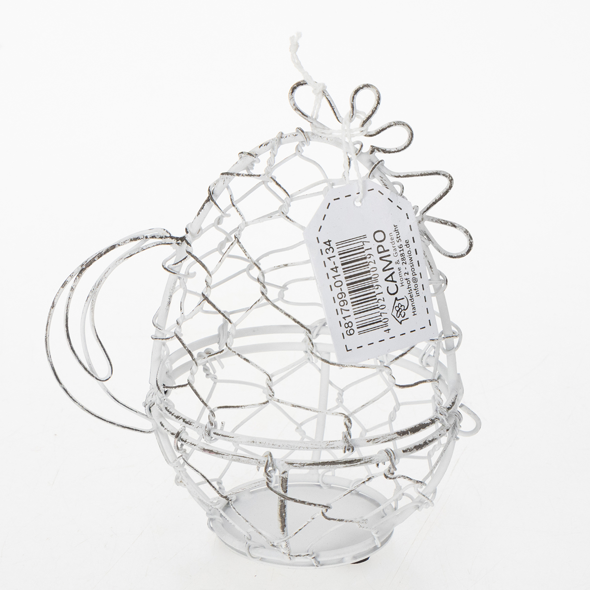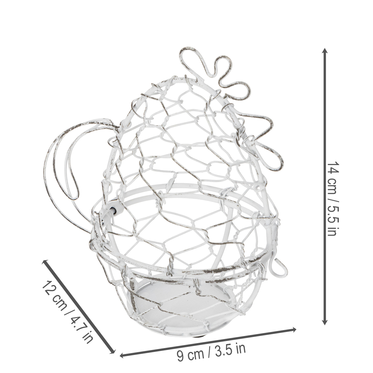 Tämä kanan muotoinen metallikori on paitsi katseenvangitsija, myös erittäin käytännöllinen. 14 cm korkea ja 12 cm halkaisijaltaan oleva kori on täydellisen kokoinen pääsiäismunillesi. Tukeva valkoinen metallirakenne korostaa viehättävää shabby chic -ilmettä, joka yhdistää hillityn eleganssin rustiikkiseen tyyliin. Ajaton muotoilu sopii monenlaisiin sisustustyyleihin maalaisromanttisesta ja vintage-tyylistä moderniin.