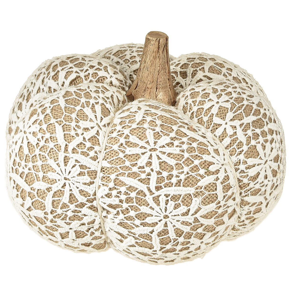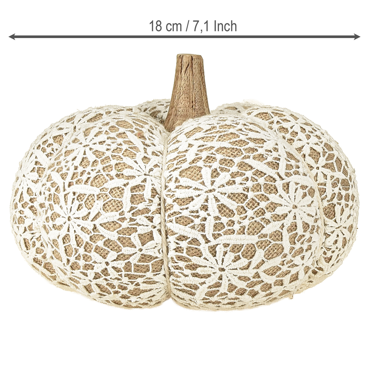 Tuotteen nimi: Kangaskurpitsakoriste juuttipitsi valkoinen/beige vintage-koriste Ø18cm