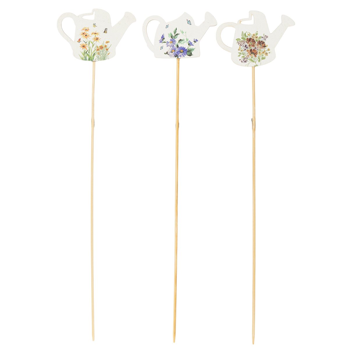 Kastelukannun koristekepit yhdistävät parhaan koristeellisuuden ja toimivuuden. Ne ovat 34 cm korkeita ja niissä on tukeva puinen keppi, joten ne on helppo asettaa multaan, sammaleeseen tai kukkavaahtoon. Hienot kukka-aiheet raikkaissa luonnonväreissä lisäävät erityisen silauksen mihin tahansa asetelmaan.