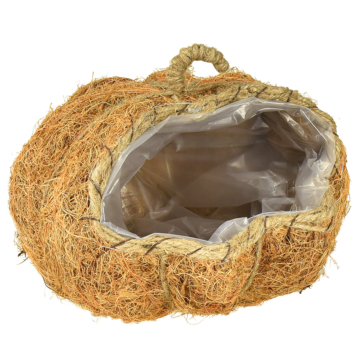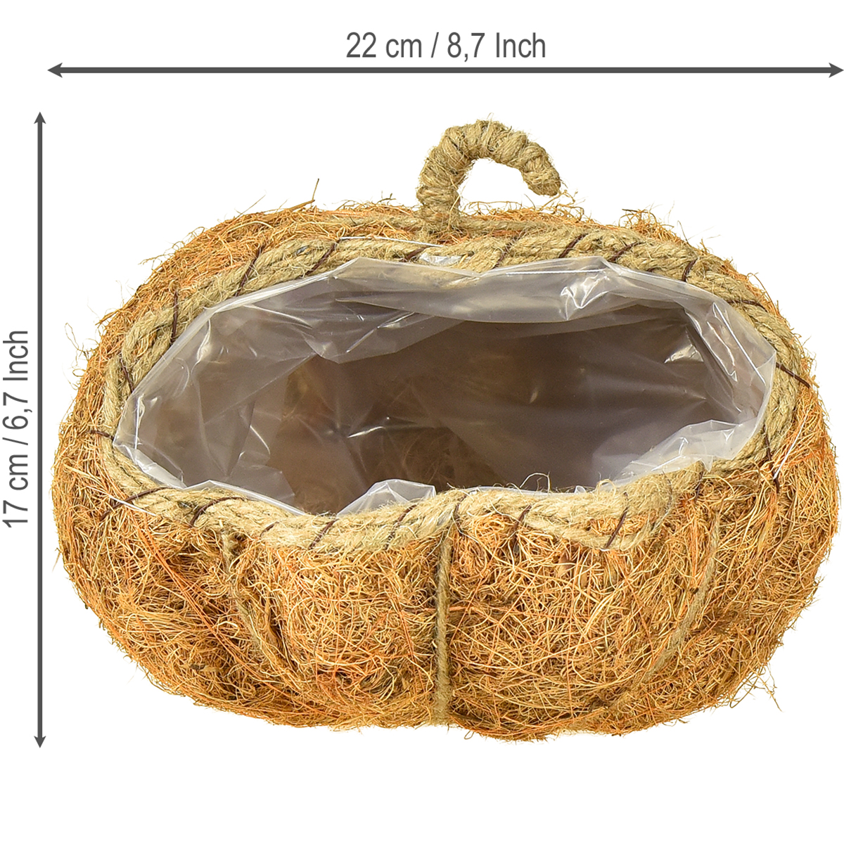 Koe syksyn taika tällä koristeellisella ruukulla, jossa on oranssi kurpitsa. Tämä ainutlaatuinen oranssi kurpitsakori on enemmän kuin vain yksinkertainen syyskoriste; se tuo lämpimän ja kutsuvan tunnelman kotiisi. Täydellisesti luonnollisesta, pehmeästä tamarindikuidusta valmistettu syksyinen ruukku tarjoaa autenttisen ilmeen, joka piristää mitä tahansa huonetta. Kurpitsa on kääritty juuttiin, ja istutusaukko on tyylikkäästi kehystetty juutilla, mikä antaa tälle koriste-esineelle maalaismaisen mutta viehättävän ilmeen. Noin 22 cm halkaisijaltaan ja noin 17 cm korkeudeltaan se sopii erinomaisesti pöydän keskipisteeksi olohuoneeseen tai kutsuvaksi koriste-elementiksi eteiseen. Kestävä ja monipuolinen varsi voi toimia myös koukkuna, jolloin kurpitsakorista tulee riippuva kori. Luo helposti syksyinen pöydän keskipiste ruokapöytääsi ja ilahduta vieraitasi tällä katseenvangitsevalla esineellä.