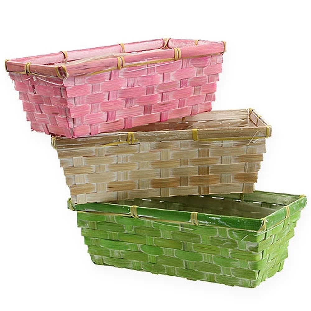 Kunkin kulmikkaan istutuskorin mitat monivärisestä lajitellusta sarjasta ovat noin 20 x 11 x 7 senttimetriä. Jalanjälki on kooltaan noin 16 x 7 tuumaa. Kahdeksan kappaleen sarjassa värit vaaleanpunainen ja vihreä ovat kumpikin läsnä kolme kertaa, väri luonto kahdesti.