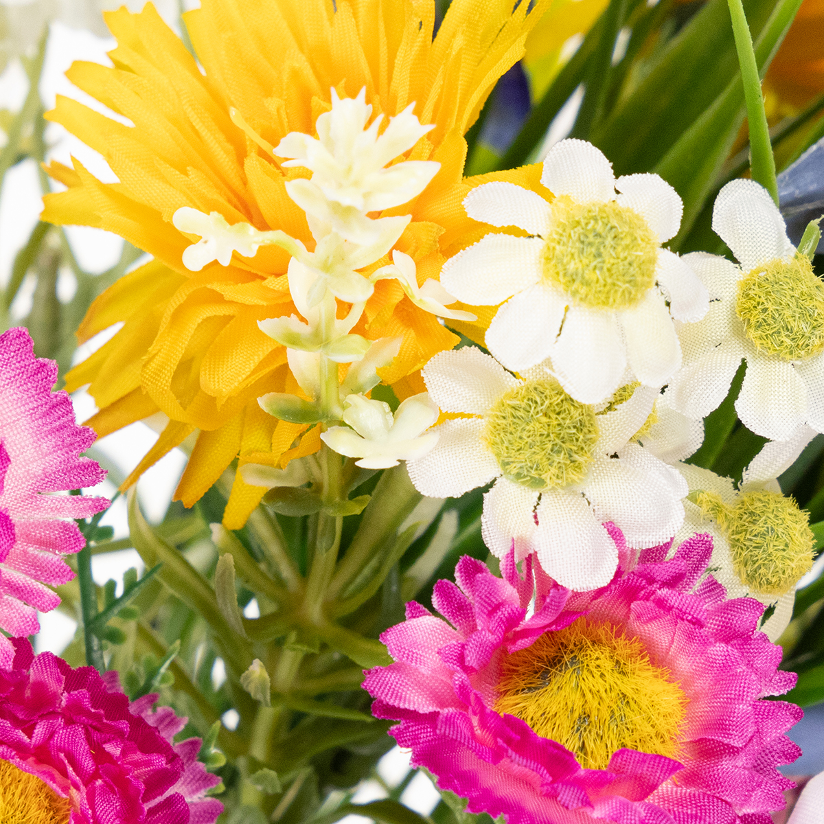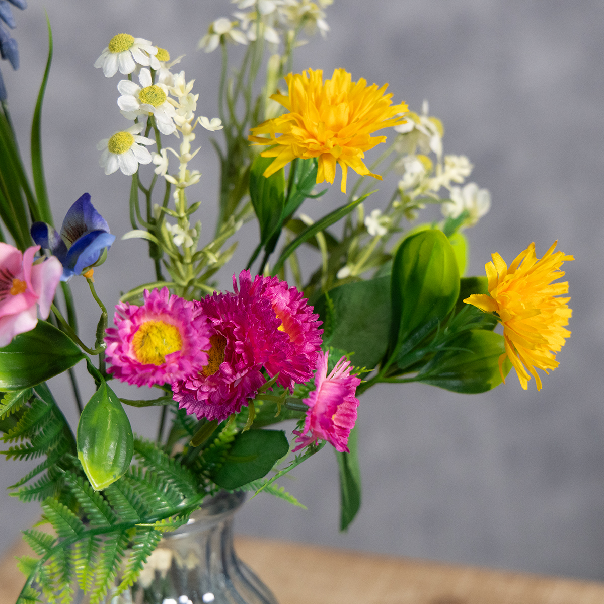 Tämä kirkkaanvärinen tekokukkien kimppu, jossa on yksityiskohtaiset kukat eloisissa keltaisen, vaaleanpunaisen ja sinisen sävyissä, tuo kevään tunnelman kotiisi. Korkealaatuisesta polyesteristä ja muovista valmistettu kimppu näyttää uskomattoman realistiselta ja tekee vaikutuksen poikkeuksellisella värinpitävyydellään ja muodonpitävyydellään. Värikkäiden kevätkukkien ja luonnonvihreiden sävyjen yhdistelmä tekee siitä erityisen monipuolisen: se täydentää maalaistyylistä sisustusta, korostaa skandinaavista sisustusta ja sopii yhtä hyvin yhteen modernin tyylin kanssa.