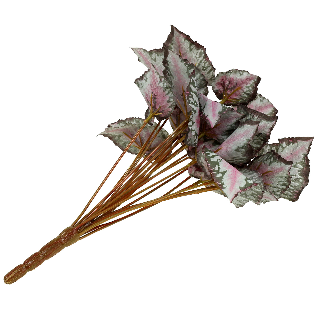 Väreiltään vihreä ja violetti keinotekoinen begoniapensas on valmistettu muovista ja silkkikankaasta, ja sen kokonaispituus on noin 34 senttimetriä, varren ollessa noin 8 senttimetriä pitkä. Dekokasvissa on noin 24 lehteä, mukaan lukien varret, joissa on lankaydin.