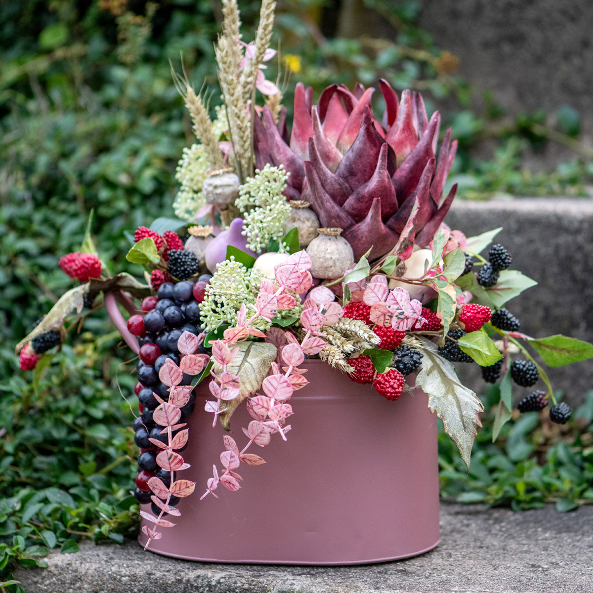 Vaaleanpunainen keinokasvi 150cm eukalyptus - viehättävä syyskoristelu
