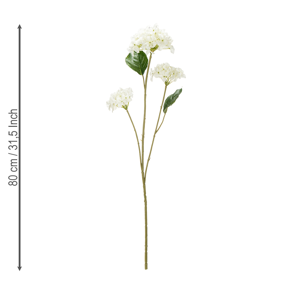 Oletko koskaan miettinyt, miten voit lisätä kotiisi elegantin ja ajattoman silauksen minimaalisella vaivalla? Silloin keinotekoiset hortensiat saattavat olla juuri sitä, mitä etsit! Tämä valkoinen tekokukka tekee vaikutuksen petollisen realistisella ulkonäöllään ja monipuolisuudellaan. Olipa kyseessä sitten modernien olohuoneiden kohokohta, tyylikäs pöytäasetelma tai vaikuttava aksentti vastaanottotiloissa – tämä kestävä ja koristeellinen kukka sopii täydellisesti mihin tahansa ympäristöön. Kolme rehevää kukkaa ja kaksi vihreää lehteä koristavat herkkää vartta antaen asetelmalle erityisen luonnollisen ilmeen. 80 cm korkea ja 30 cm leveä kukka sopii erinomaisesti suurempiin maljakoihin tai koristeellisiin lattia-asetelmiin. Korkealaatuinen polyesteri- ja muovirakenne takaa, että nautit tästä elegantista tekokukasta pitkään.