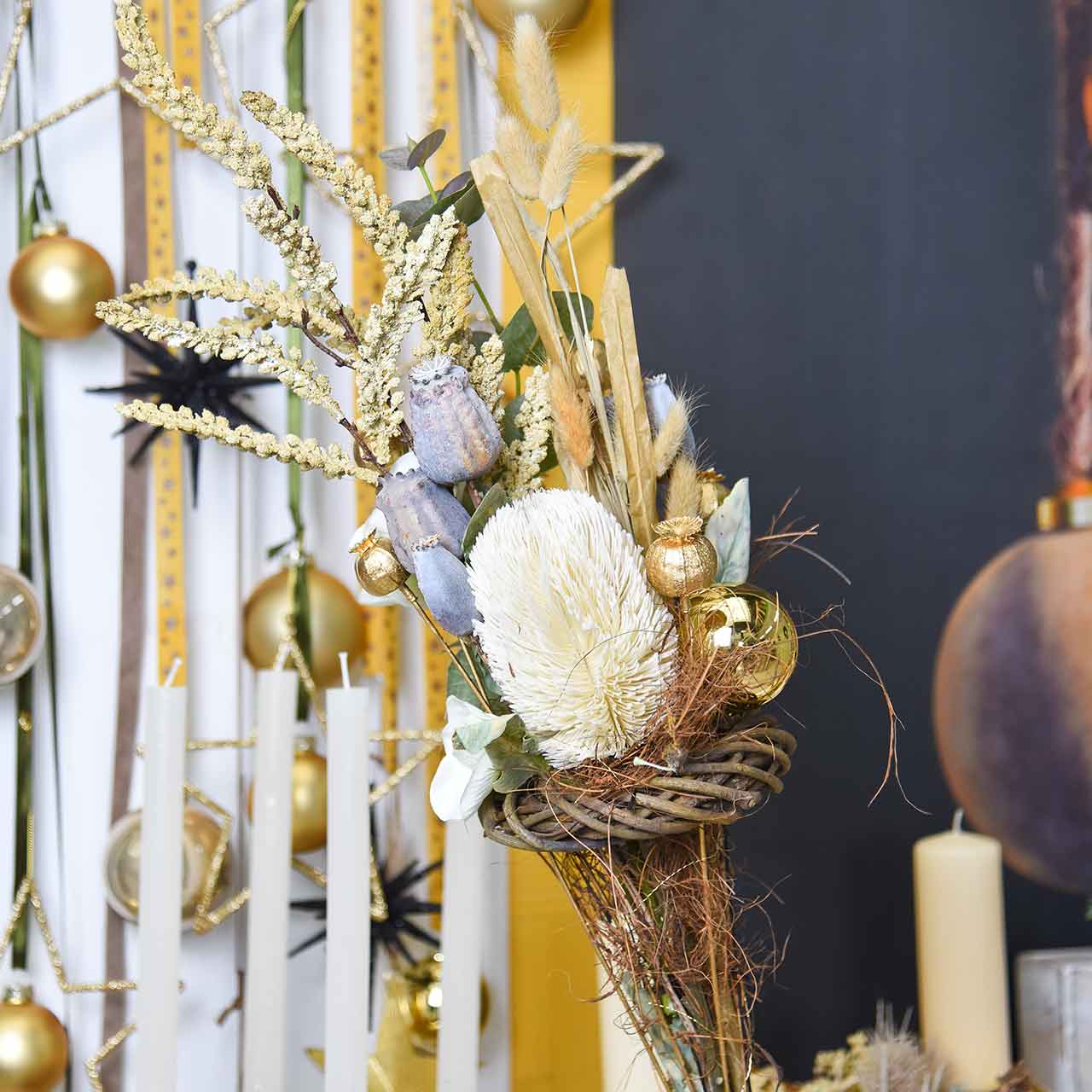 Siten voit helposti kiinnittää silkkikukan omaa luokkaansa kuivaan vaahtomuoviin tai sisällyttää sen myös seppeleisiin tai ikkunakoristeisiin. Koristeellisesta kukasta tulee katseenvangitsija yksinään maljakossa. Yhdistettynä muihin tekokasveihin tai syksyn silkkikukkiin - vihreitä, kermanvalkoisia, oransseja, punaisia tai violetteja - voit luoda tekokukkakimpun, joka antaa syksyn värien loistaa kaikessa loistossaan.