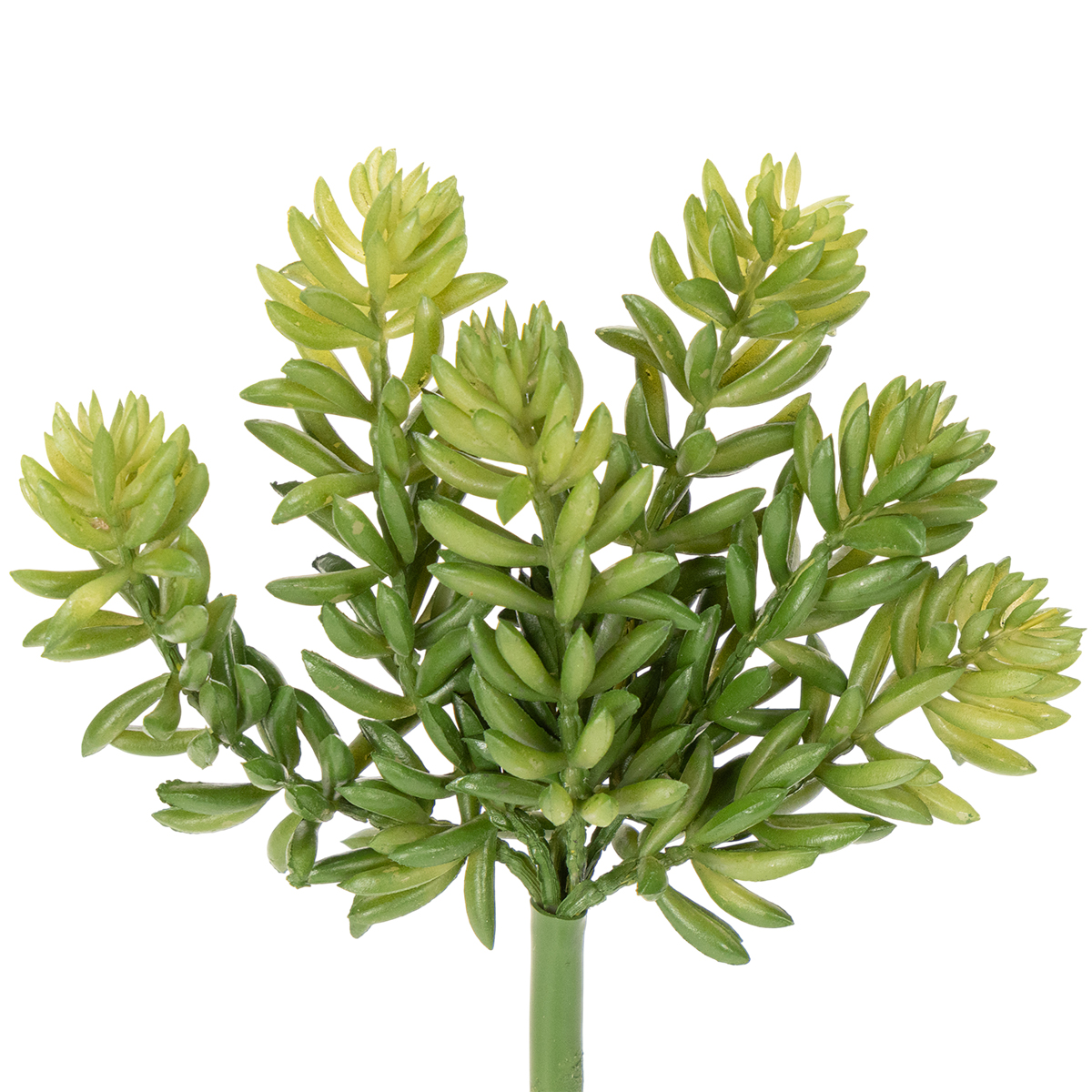 Keinotekoinen mehikasvimme tekee vaikutuksen paitsi realistisella muotoilullaan myös monipuolisuudellaan. Huolellinen yksityiskohta ja rikas vihreä väri tekevät siitä täydellisen koristeellisen kohokohdan mihin tahansa huoneeseen. Paksu ja tukeva varsi varmistaa, että kasvi sopii mihin tahansa maljakkoon tai asetelmaan, kun taas sen kuusipiikkiset oksat tarjoavat erityisen luonnollisen ilmeen. Tämä tekokukka on ihanteellinen niille, jotka etsivät helppohoitoisia koriste-esineitä. 15 cm korkeana se sopii täydellisesti hyllyille, sivupöydille tai vitriiniin. Yhdessä muiden koriste-elementtien, kuten puisten kulhojen, kynttilänjalkojen tai minimalististen lasimaljakoiden, kanssa se luo nopeasti harmonisen kokonaisilmeen. Pidätkö modernista vai skandinaavisesta tyylistä? Tämä mehikasvi sulautuu saumattomasti ja on taatusti katseenvangitsija! Mehikasvi tekee myös upean vaikutuksen toimistossa. Tilat, kuten vastaanottoalueet, odotushuoneet tai kokoushuoneet, hyötyvät sen rentouttavasta tunnelmasta ja rauhoittavista vihreistä sävyistä. Haluatko kaunistaa toimistoympäristöäsi ilman, että kenenkään tarvitsee investoida aikaa ylläpitoon? Nämä tekokasvit tarjoavat täydellisen ratkaisun.