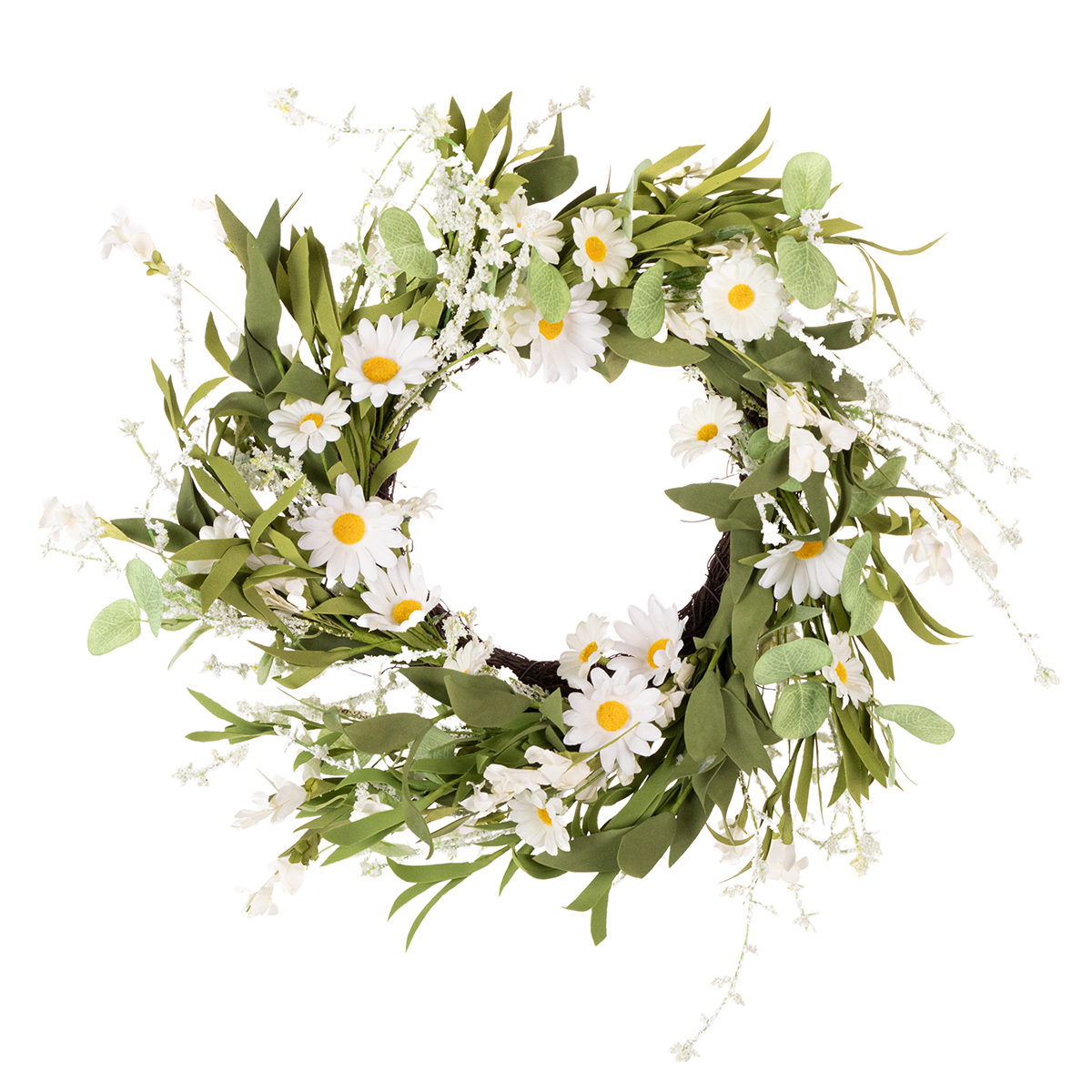 Keinotekoinen päivänkakkara-seppele, luonnollisen näköinen ja kestävä, oven ja seinän koristeeksi, 55 cm