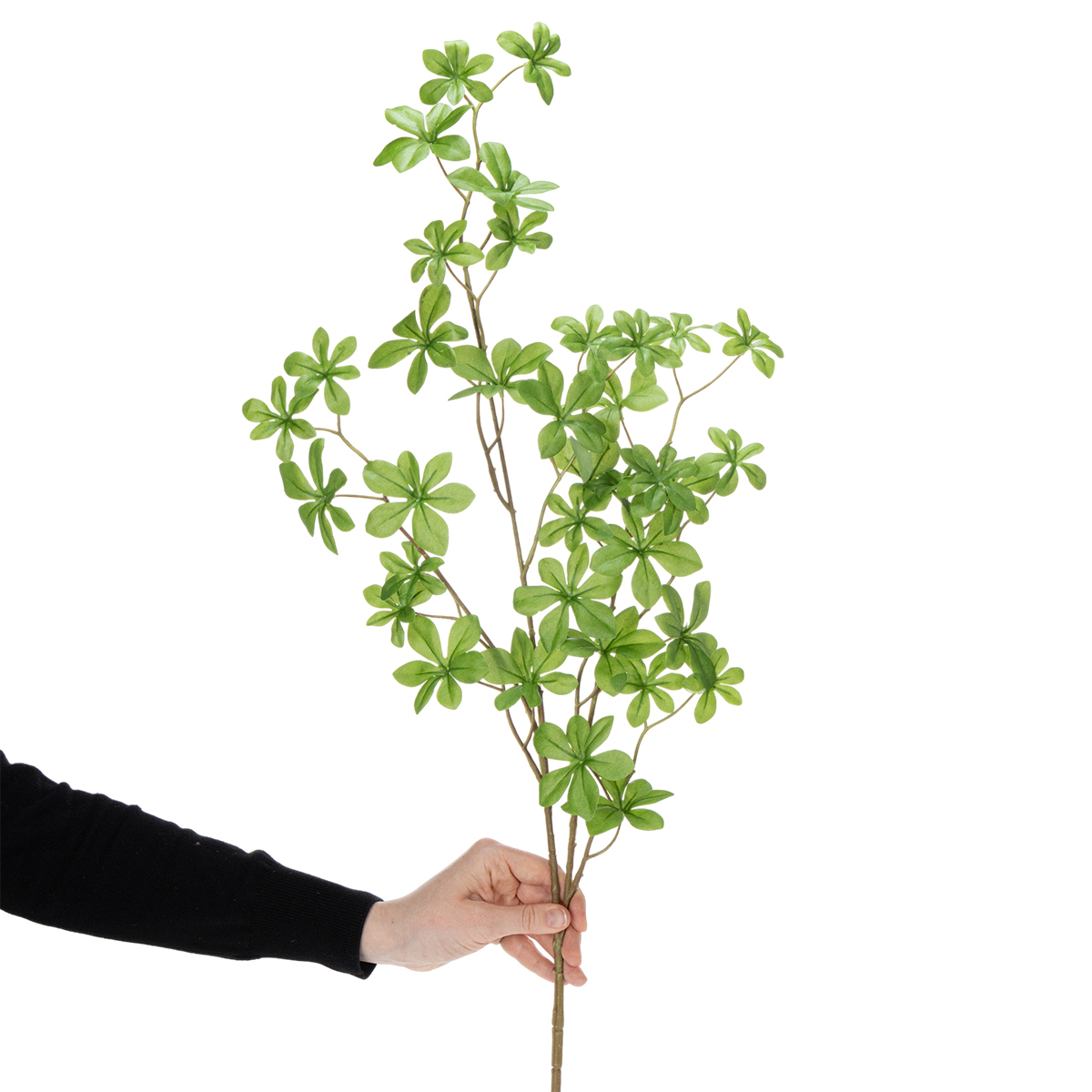 Etsitkö yksinkertaista mutta tyylikästä tapaa parantaa olohuoneesi ilmettä? Tutustu sitten keinotekoiseen Schefflera-oksaamme. Aidon ulkonäkönsä ansiosta tämä koristeellinen kasvin oksa tuo raikkaan silauksen mihin tahansa huoneeseen ilman huoltoa. Ja mikä parasta? Se näyttää aivan yhtä elävältä kuin oikea kasvi, ilman kastelua tai auringonvaloa. Täydellinen niille, jotka rakastavat modernia mutta rentoa tunnelmaa.