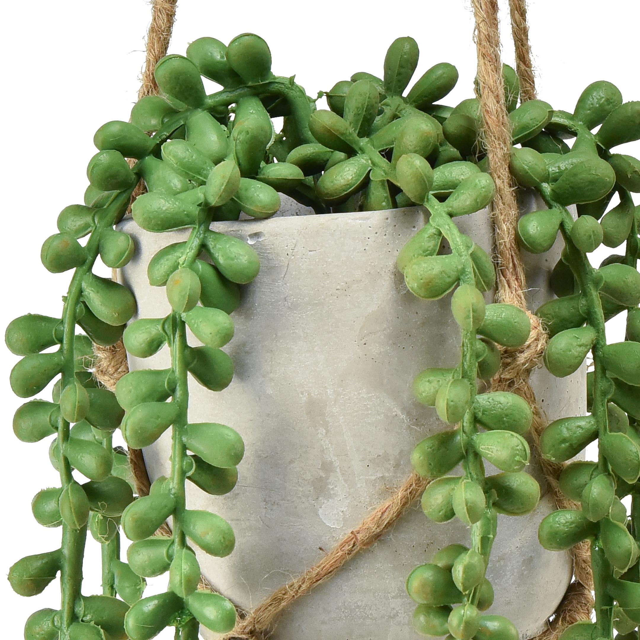 Harmaassa keraamisessa kukkaruukussa käärmeensu näyttää erityisen eloisalta ja aidolta. Viimeisenä mutta ei vähäisimpänä, makrameen näköinen solmittu jousitus antaa roikkuvalle korille rustiikkia.