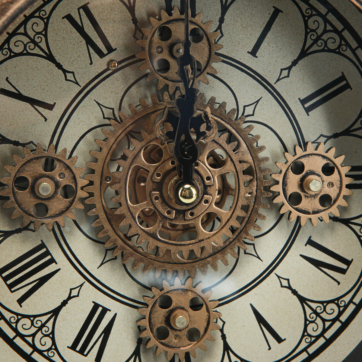 Steampunk-liikkeen inspiroima kello yhdistää teollisen estetiikan elementtejä moderniin muotoiluun. Kellokoneisto hammaspyörillä korostaa teollista luonnetta ja tekee kellosta erottuvan taideteoksen. Herätyskellon lisäilme täydentää kokonaiskuvaa ja tekee tästä kappaleesta monipuolisen pöytäkellon.
